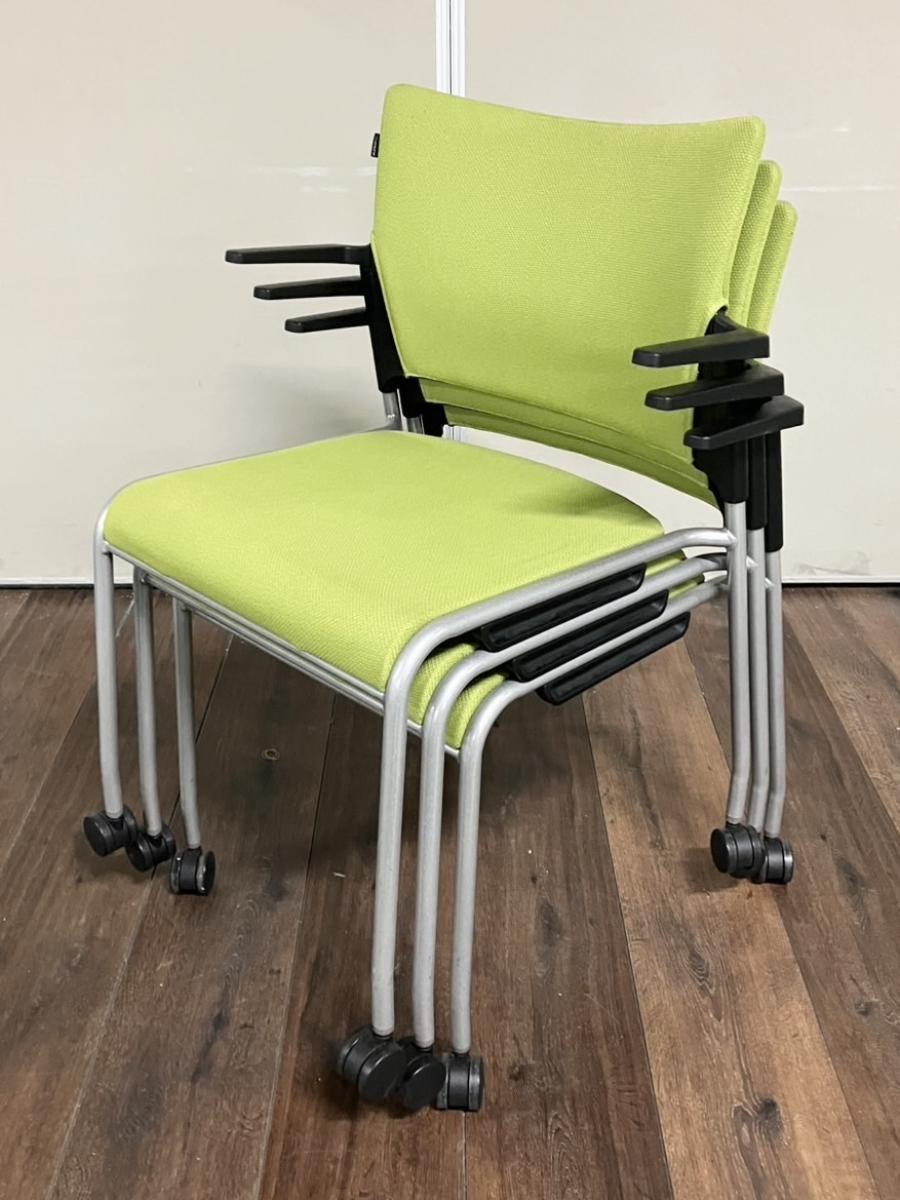【ロット商品!】◇オカムラ(okamura) レーテシリーズ ◇グリーン 背もたれブラック樹脂 ◇キャスター付 スタッキングチェア ミーティングチェア 〈岐阜・愛知・三重・静岡・福井〉- 名古屋本店