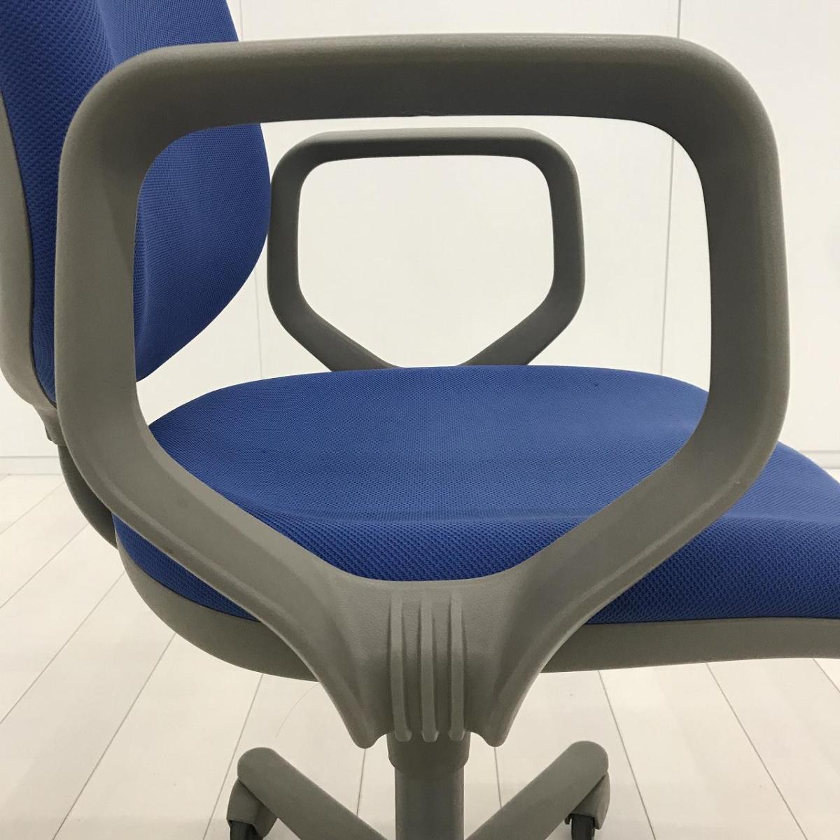 【在庫セール品・6脚限定】【T4】■オカムラ製 CG-Eチェア 肘付ローバック ■ブルー ■可動肘【スタンダードなデザインで座りやすい! ローコストチェアの定番!】