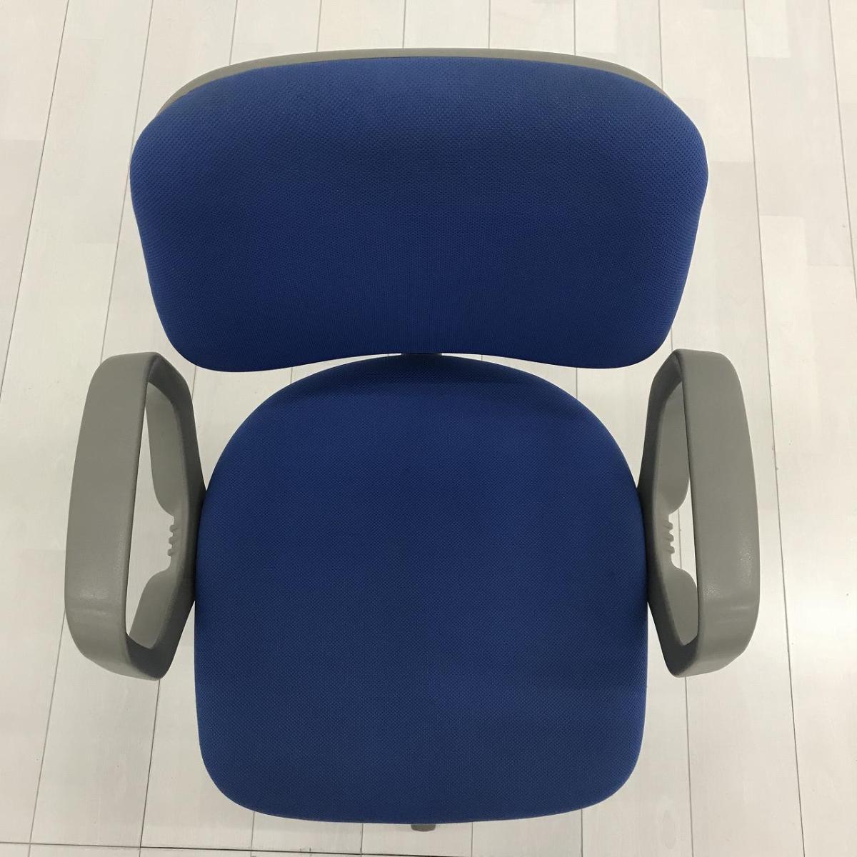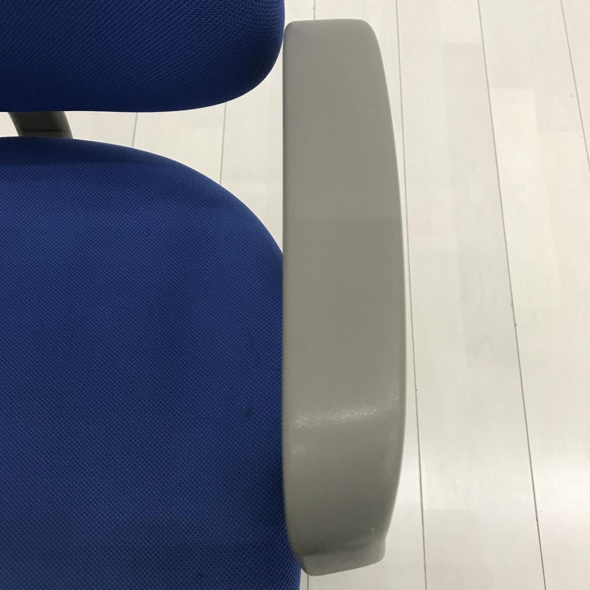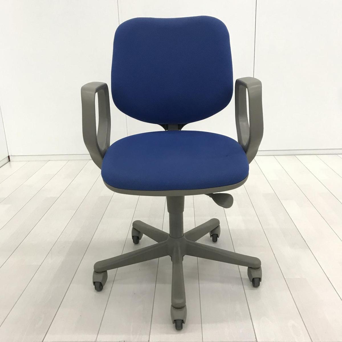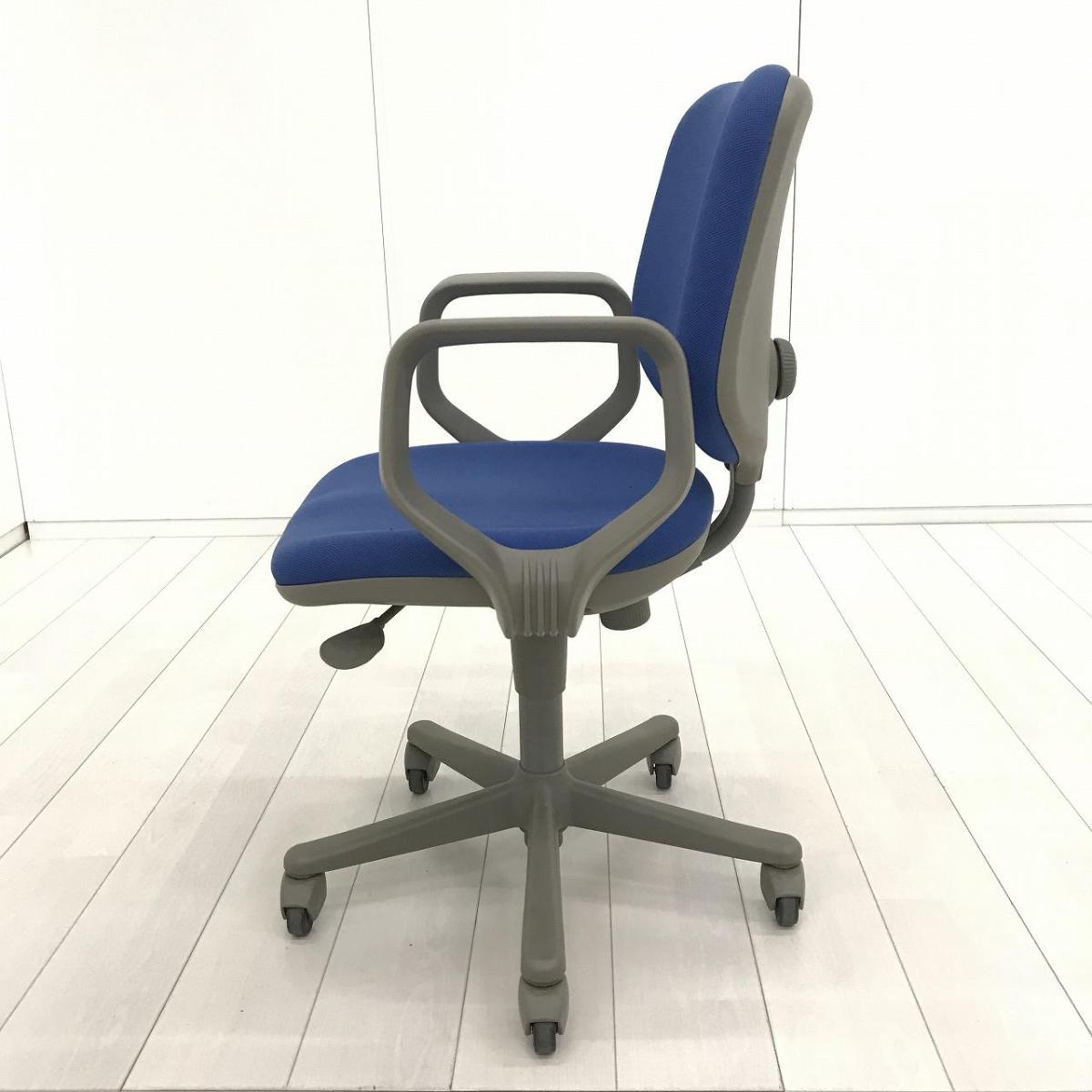 【スタンダードなデザインで座りやすい! ローコストチェアの定番!】■オカムラ製 CG-Eチェア 肘付ローバック ■ブルー ■可動肘