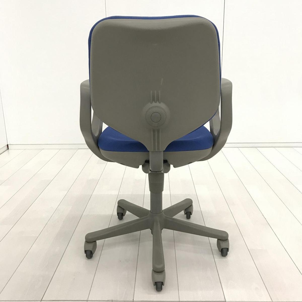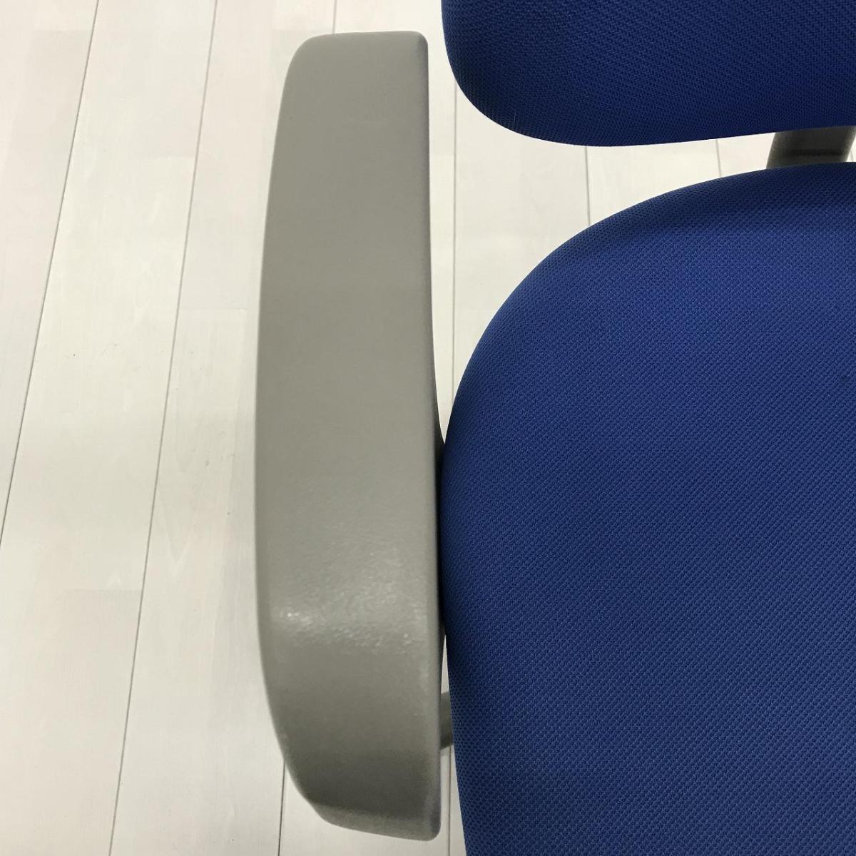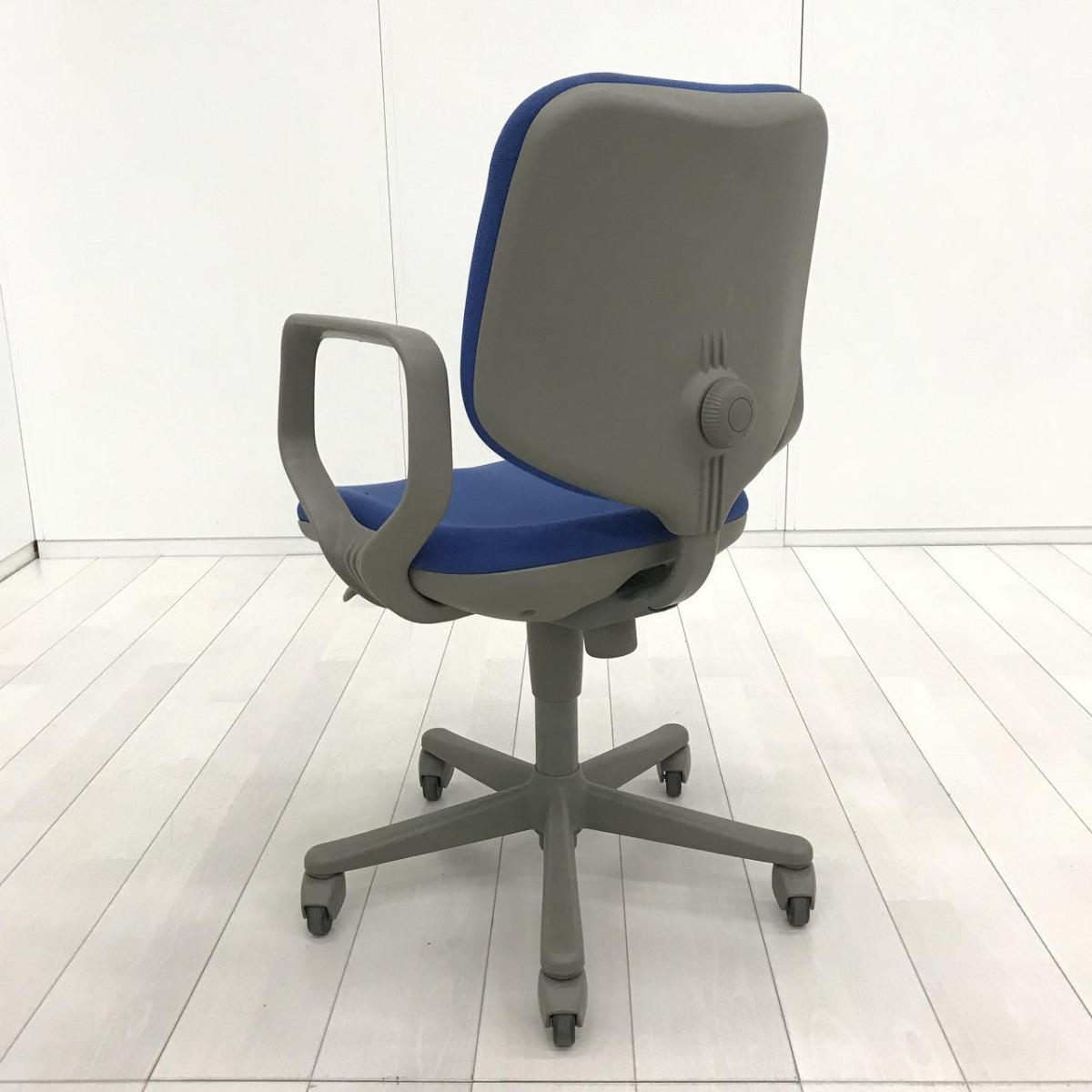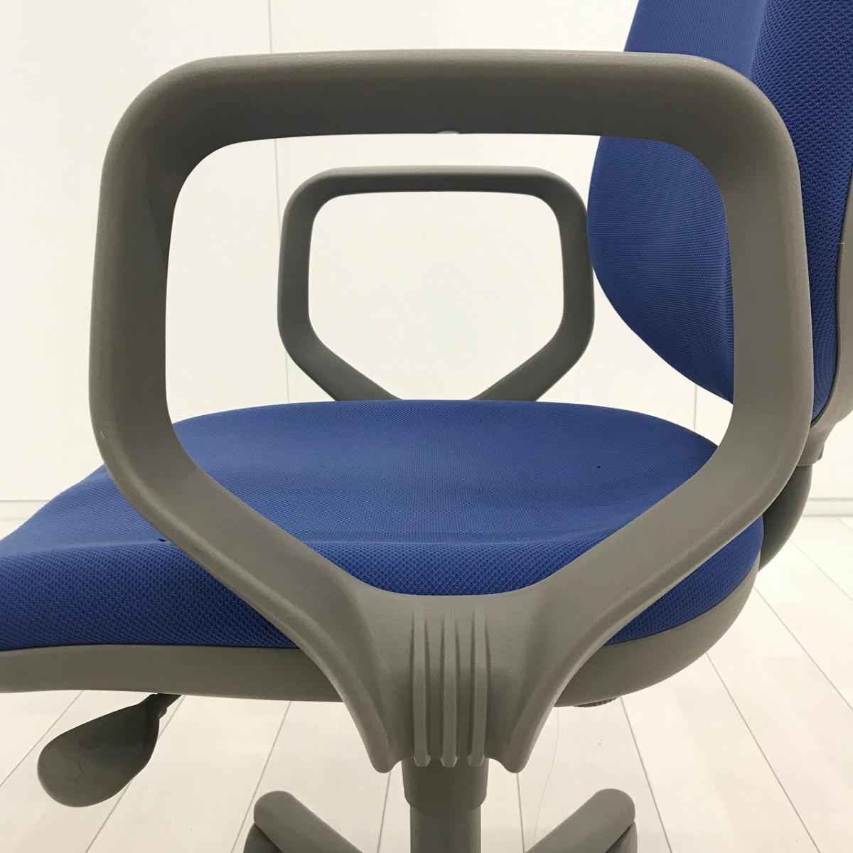 【スタンダードなデザインで座りやすい! ローコストチェアの定番!】■オカムラ製 CG-Eチェア 肘付ローバック ■ブルー ■可動肘