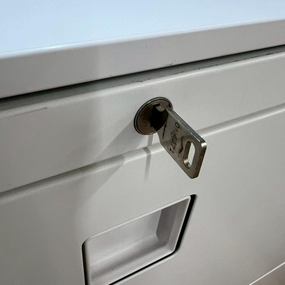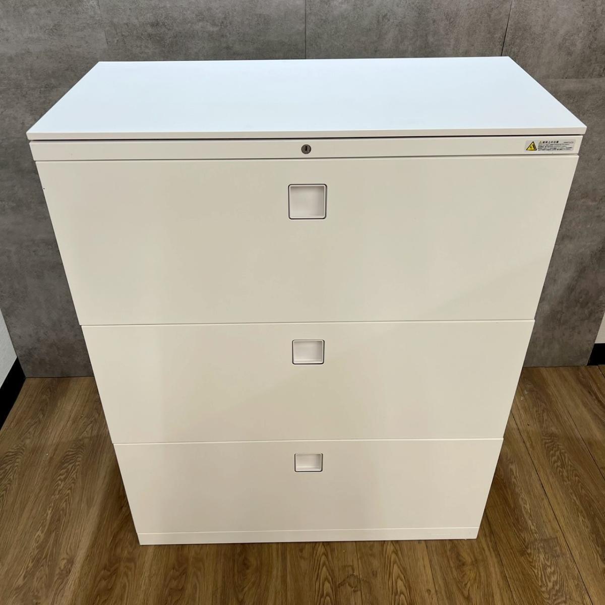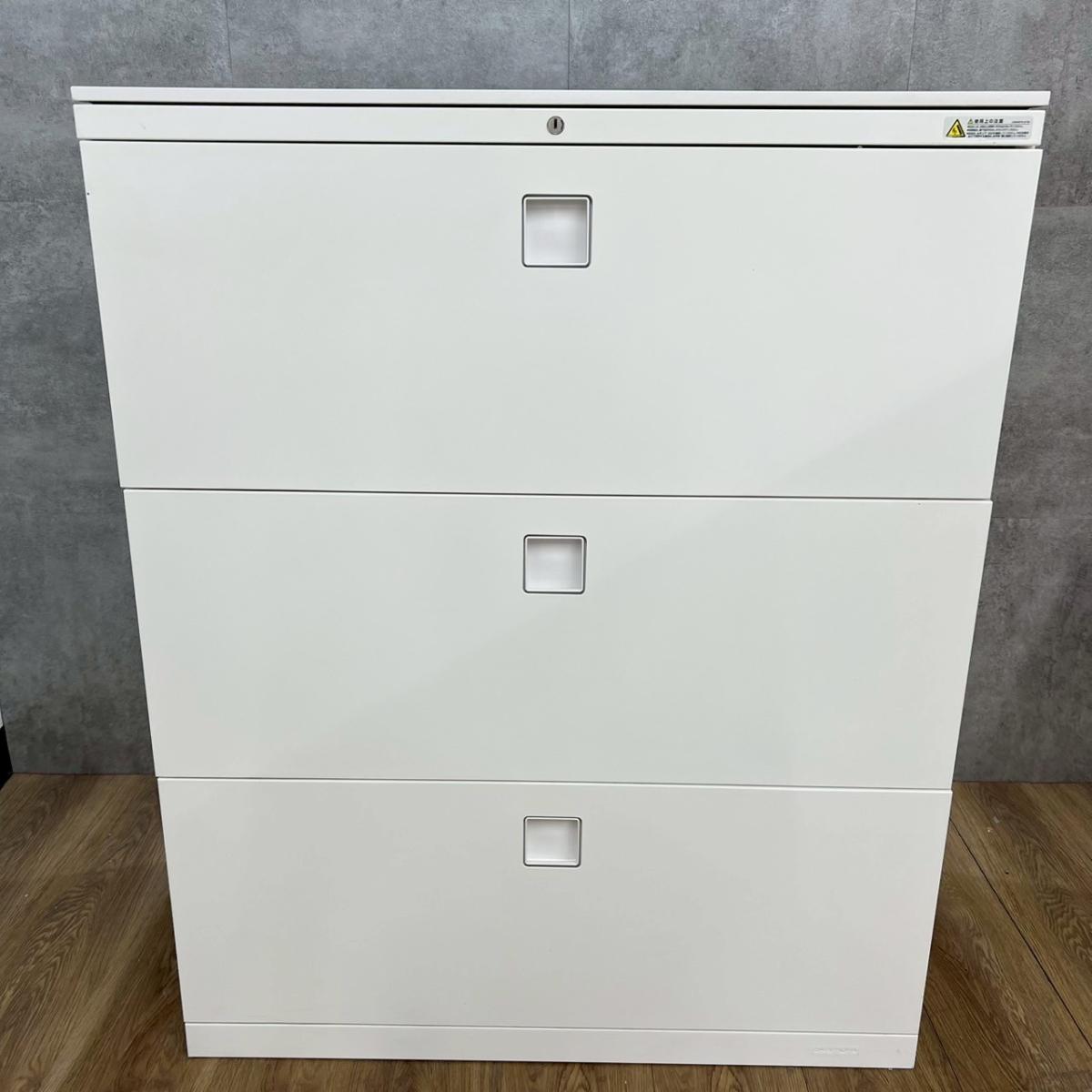 【定価約13万円】【オフィスの必需品!大容量の三段キャビネット】■オカムラ/レクトラインシリーズ 3段ラテラル ホワイト ■シリンダー錠 ■天板無