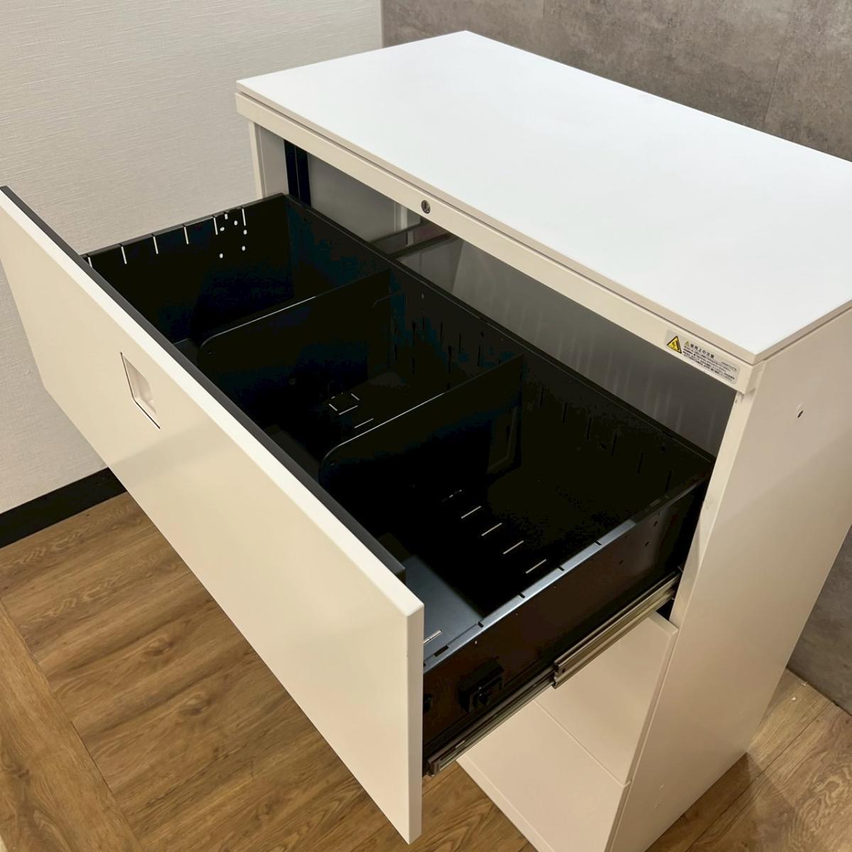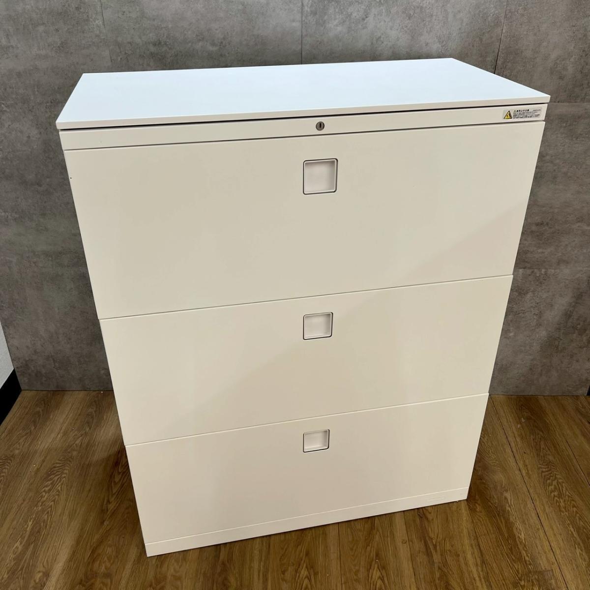 ファイル収納にオススメ!高品質で使いやすい人気シリーズの3段ラテラル書庫!/オススメ(おすすめ) /人気商品【弊社使用欄:A01049240】■オカムラ(okamura)製 レクトラインシリーズ 3段ラテラル書庫 ローキャビネット ■シリンダー鍵 ■ホワイト