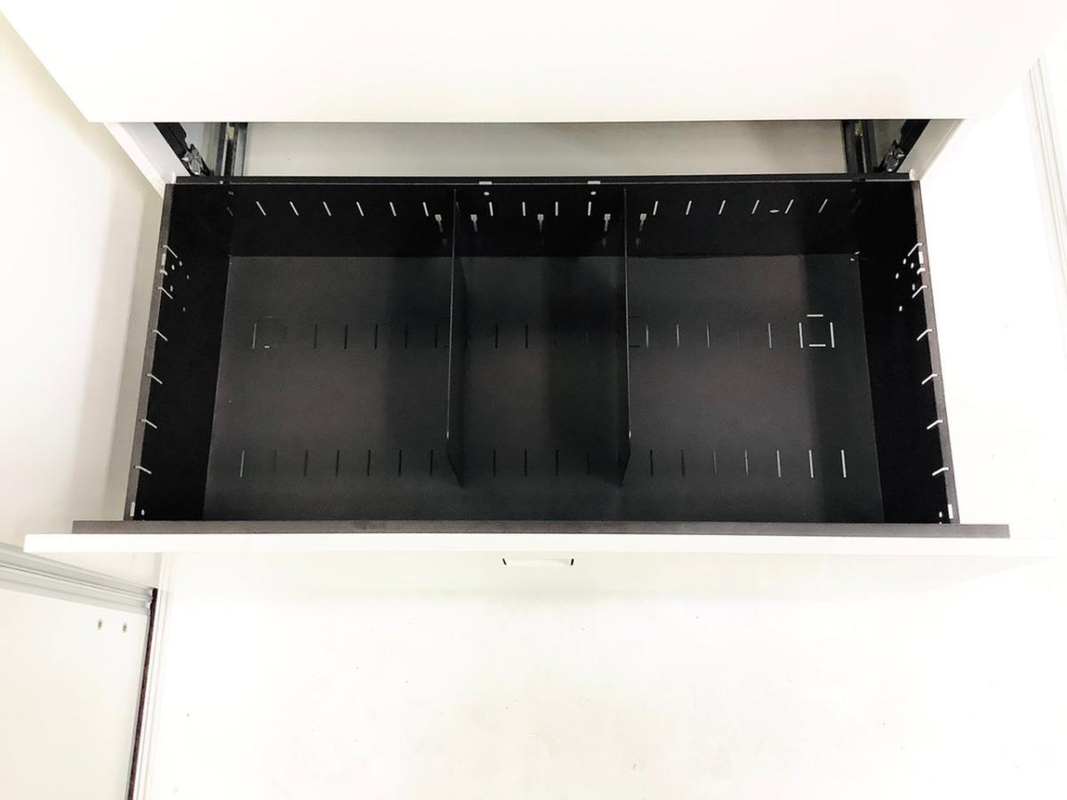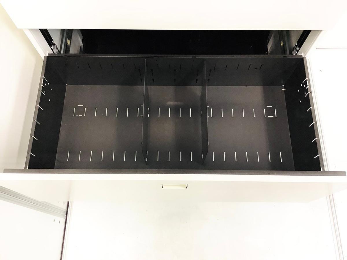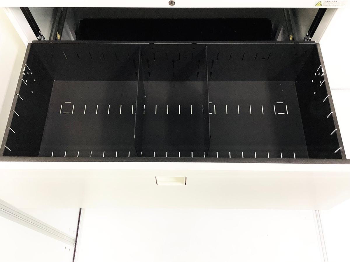 - 一部不具合ありそ引出の開閉不可、施錠不可、棚板無しといったの書庫の本来の効用を果たすための機能以外の一部が使用不可(例、扉、引出の開閉がしづらいなどがある。 )