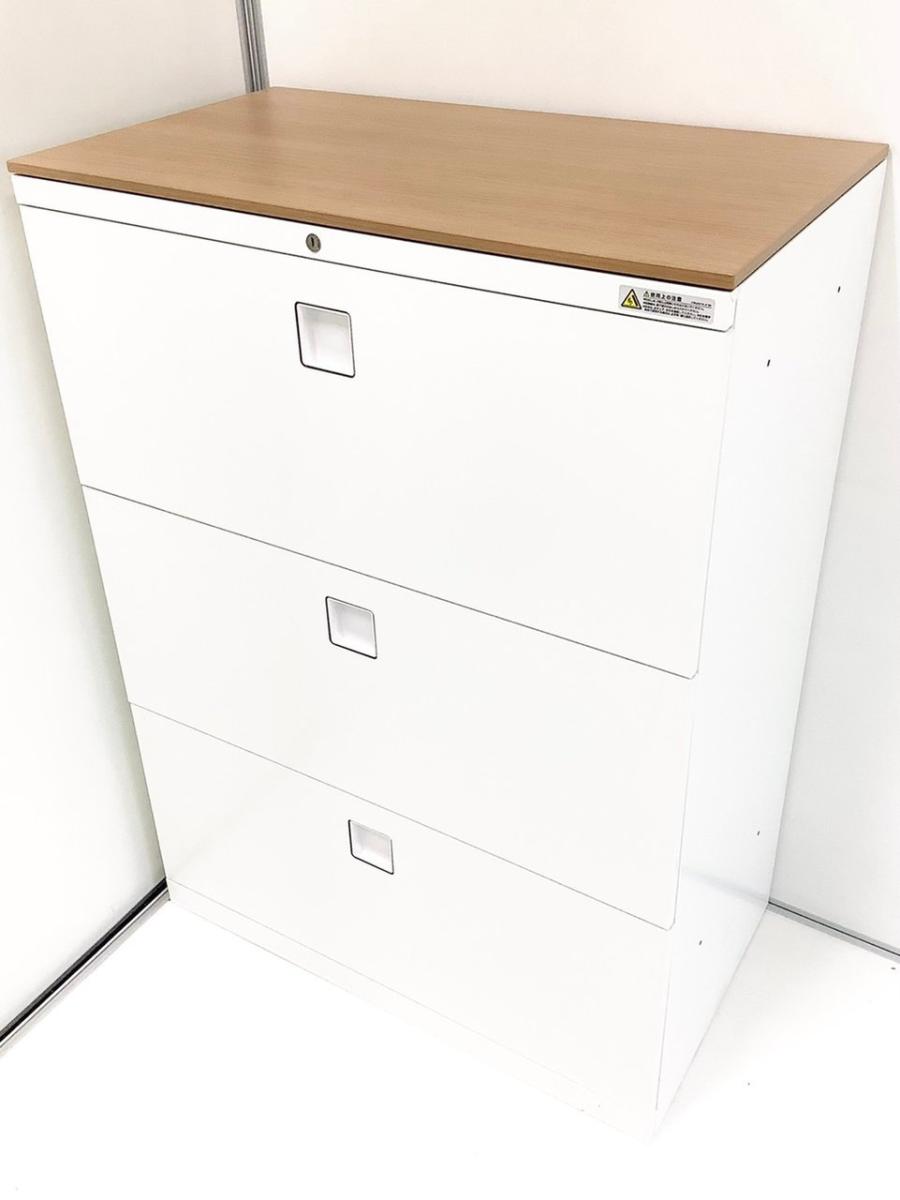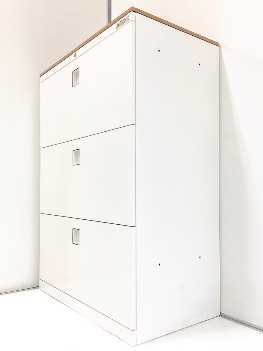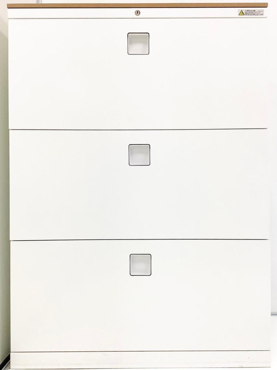 【定価約13万円】【オフィスの必需品!大容量の三段キャビネット】■オカムラ/レクトラインシリーズ 3段ラテラル ホワイト ■シリンダー錠 ■天板無