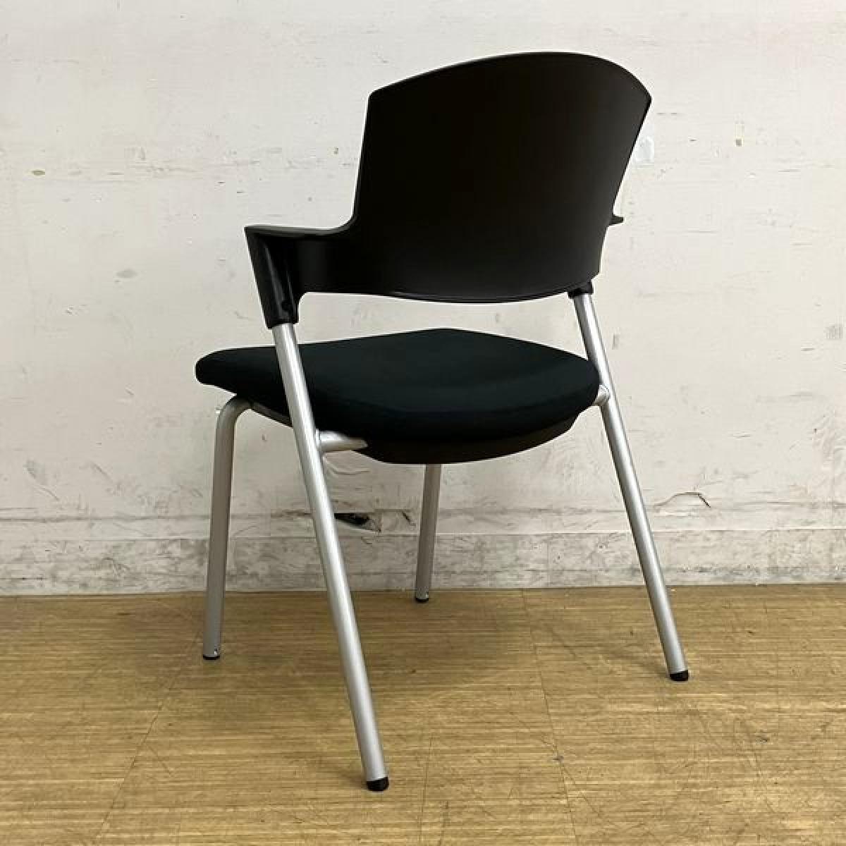 【シンプルスマートなスタッキングチェア!分厚いクッションで長時間でも快適な座り心地!】■コクヨ(KOKUYO)製 プロッティ(Protty)シリーズ スタッキングチェア ■ブラック ■固定肘 ■背面樹脂 ■キャスター付