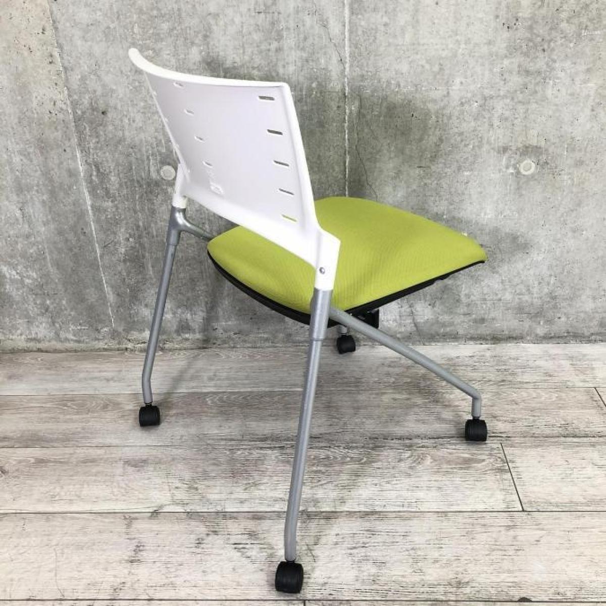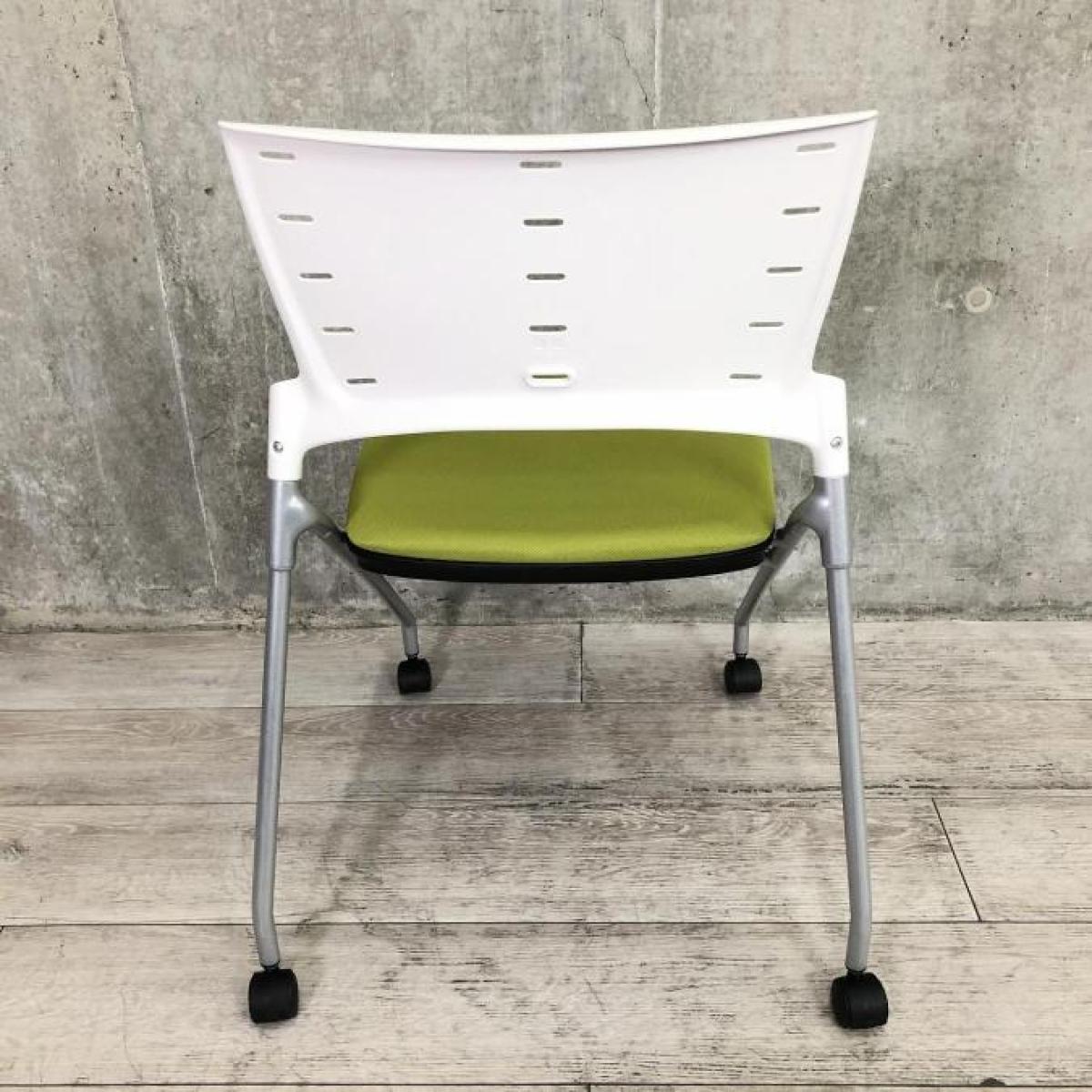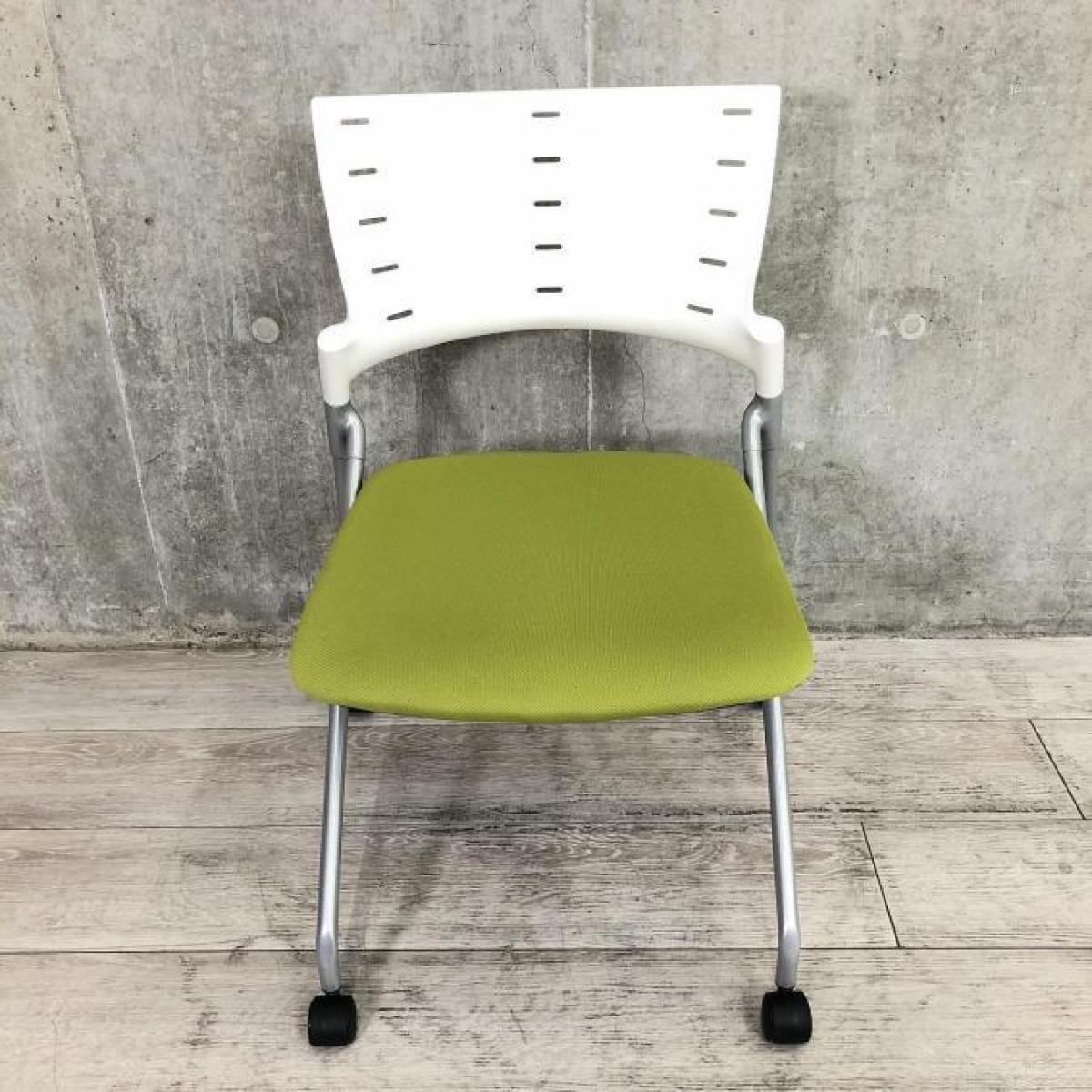 【平行に重ねて省スペース!使い勝手抜群のミーティングチェア!】イトーキ(ITOKI)製 マノス(MANOSS)チェア 肘無し スタッキングチェア ミーティングチェア ■キャスター付き ■背面:ホワイトシェル×モスグリーン