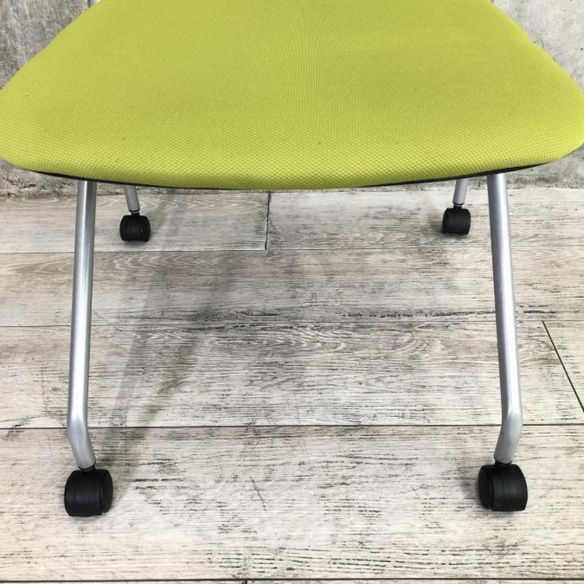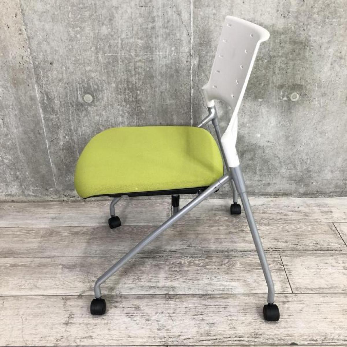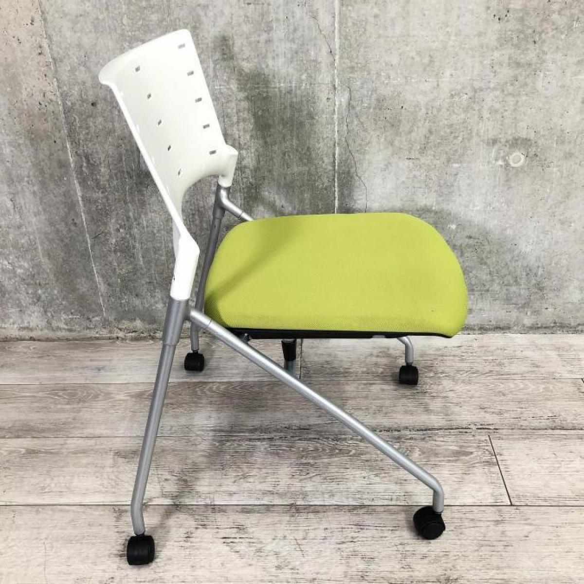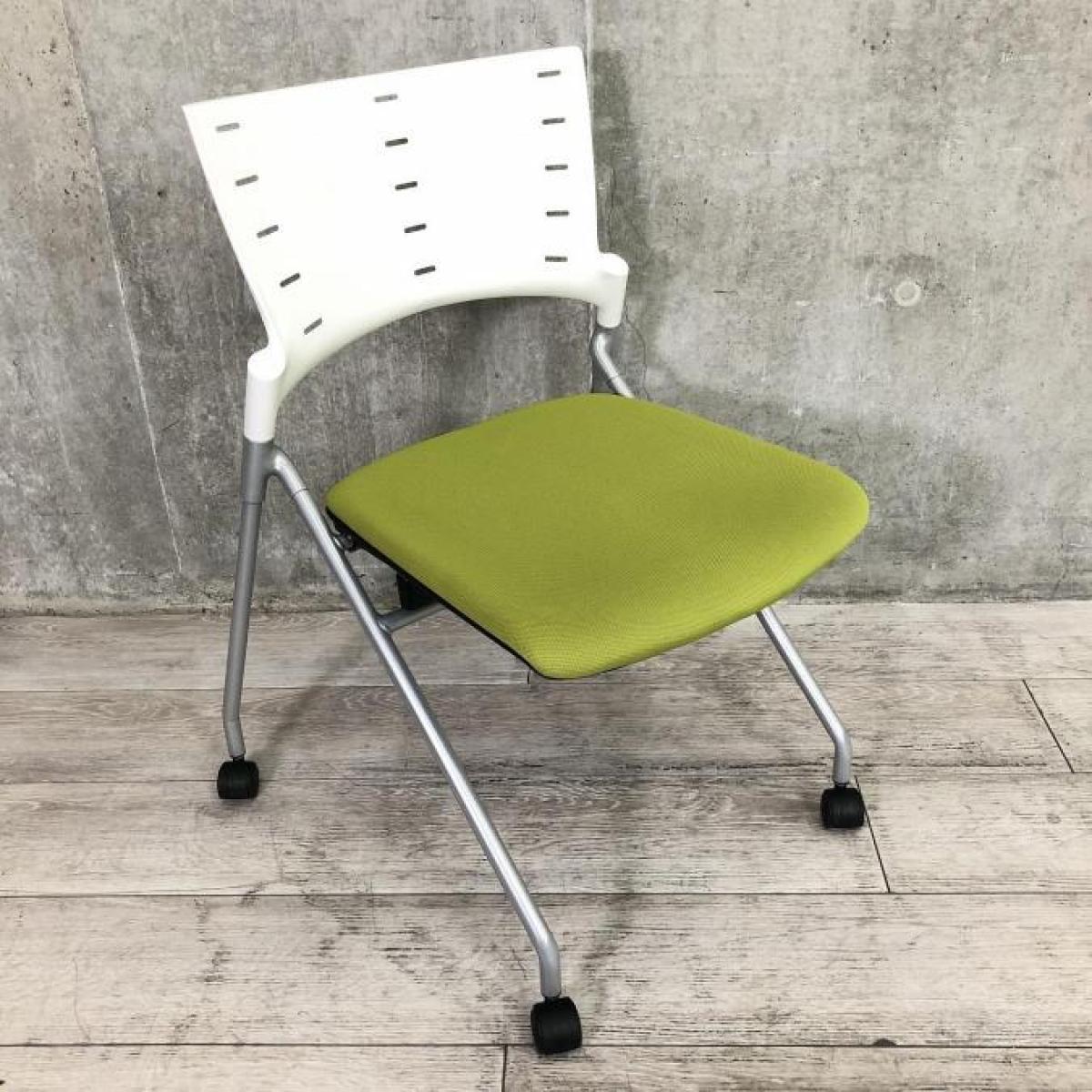 【平行に重ねて省スペース!使い勝手抜群のミーティングチェア!】イトーキ(ITOKI)製 マノス(MANOSS)チェア 肘無し スタッキングチェア ミーティングチェア ■キャスター付き ■背面:ホワイトシェル×モスグリーン