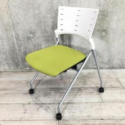 【平行に重ねて省スペース!使い勝手抜群のミーティングチェア!】イトーキ(ITOKI)製 マノス(MANOSS)チェア 肘無し スタッキングチェア ミーティングチェア ■キャスター付き ■背面:ホワイトシェル×モスグリーン【IB】