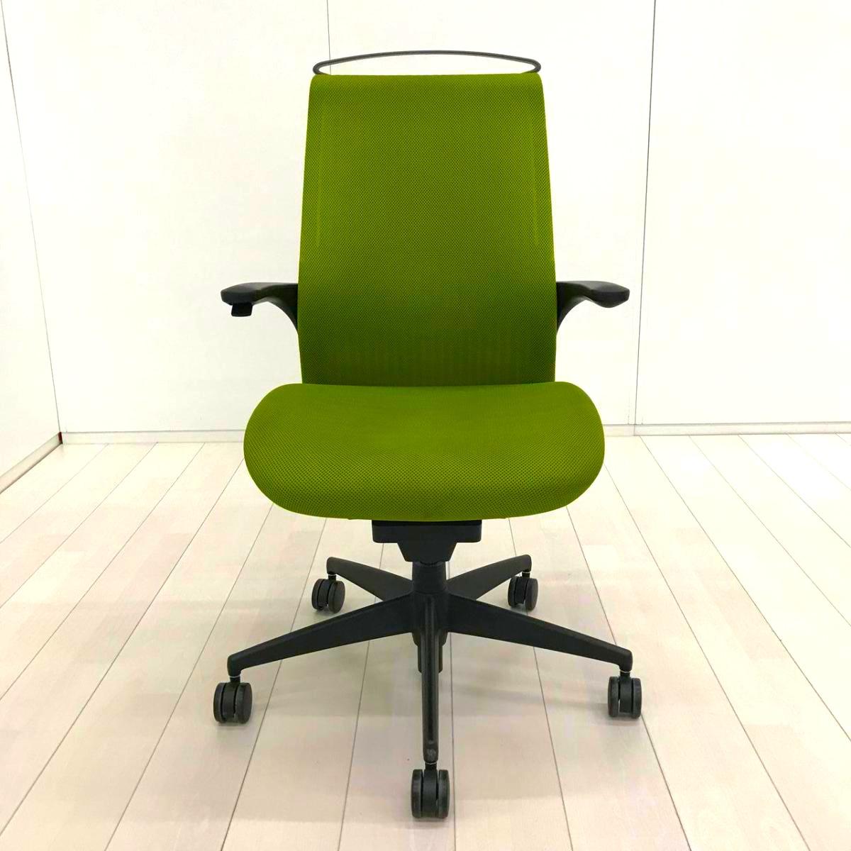 高機能/人気/定番 ■コクヨ(KOKUYO)製 M4(エムフォー)チェア 肘付 ハイバック ■固定肘 ■リーフグリーン ※背面スレ