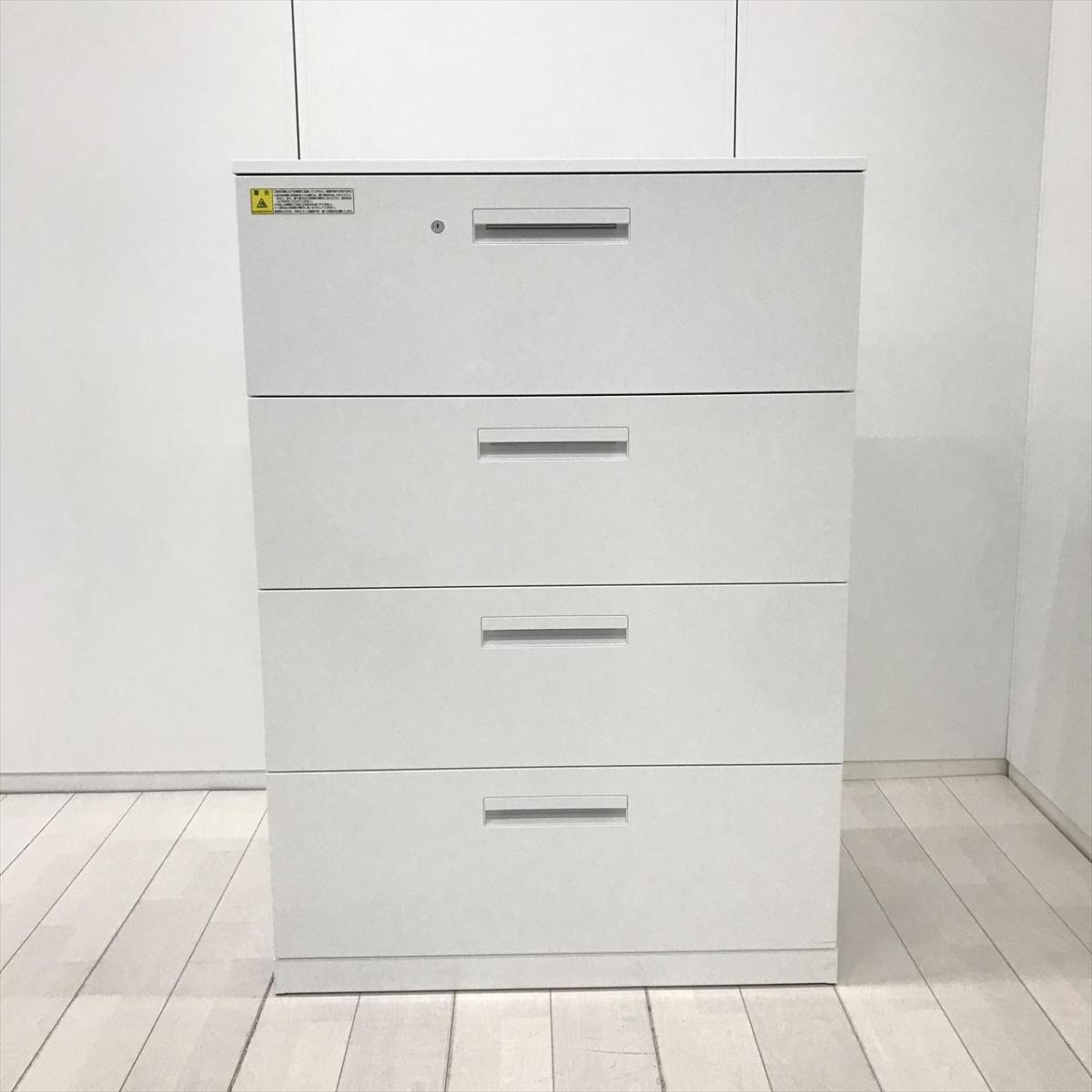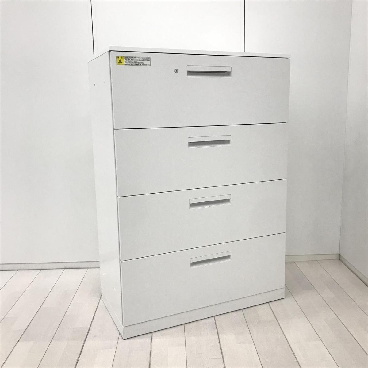 【オフィスの定番!安心品質の4段ラテラルキャビネット。! 】■内田洋行(UCHIDA)製 HS(ハイパーストレージ)シリーズ 4段ラテラル ローキャビネット ■シリンダー錠 ■ホワイト
