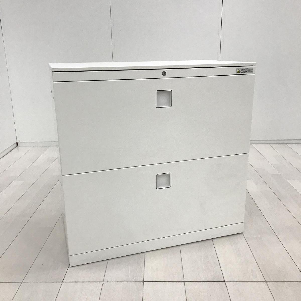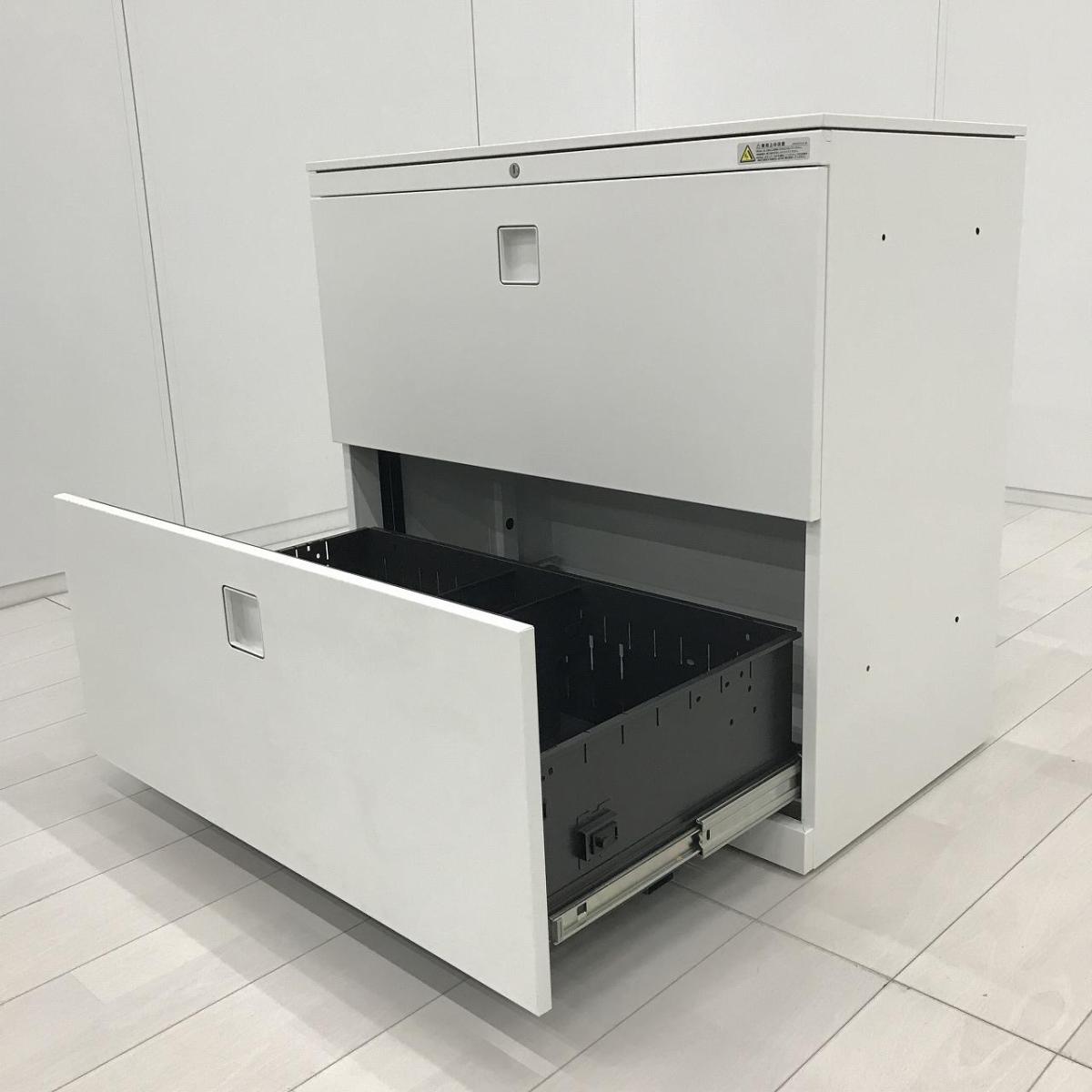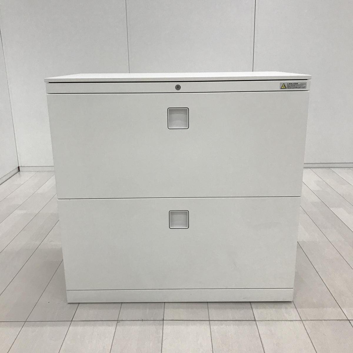 【窓下の収納にうってつけの高さ780mm!希少な2段ラテラル書庫!】■オカムラ(okamura)製 レクトライン(Rectline)シリーズ 2段ラテラル書庫 ローキャビネット W800×D450×H780mm ■シリンダー錠 ■ホワイト ※ラッチ日焼け 【関東倉庫在庫品】【弊社使用欄:A01047166】【HU】