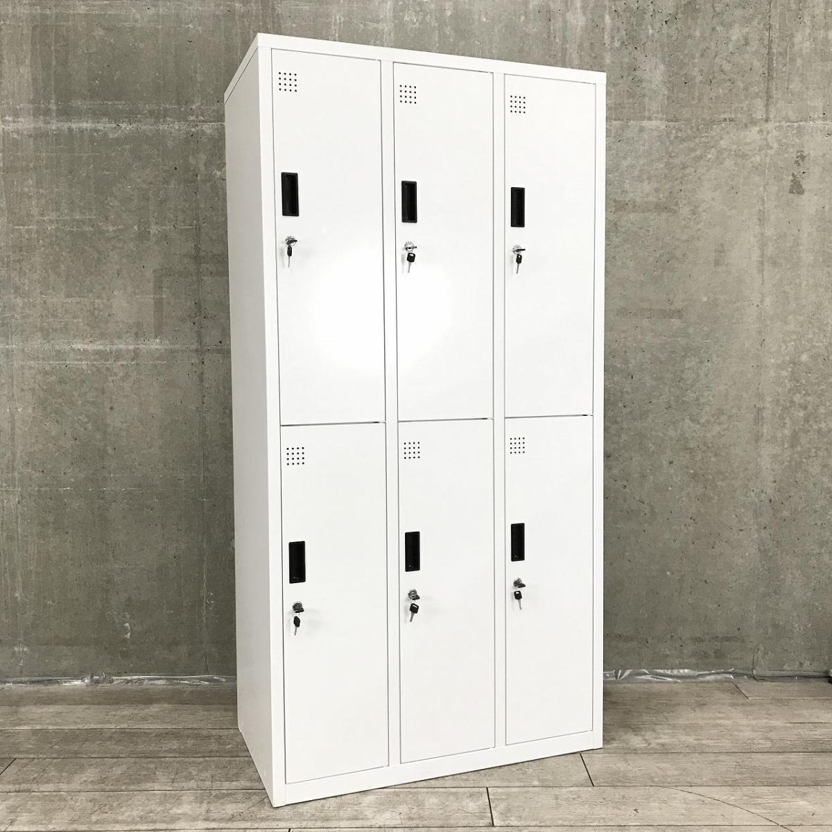 【定価約11万円】【省スペースに6名分の収納可能!常に人気の高い更衣用ロッカー!】■6人用更衣ロッカー 3列×2段収納 W900×D515㎜ ■ホワイト ■シリンダー錠【移転や増員を検討されている方にオススメ!】- 仙台店