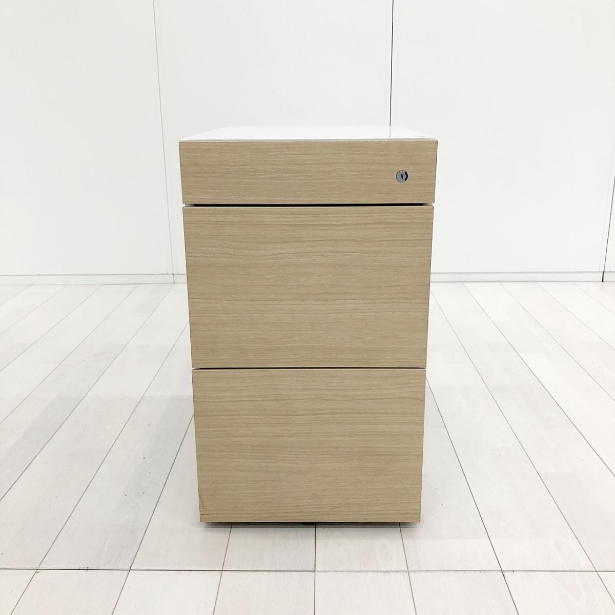 希少/おすすめ/人気 ■イトーキ(ITOKI)製 インステート(INSTATE)シリーズ 3段ワゴン H680㎜ ■キャスターロック付 ■シリンダー錠 ■ファインウォールナットL/本体:ホワイト