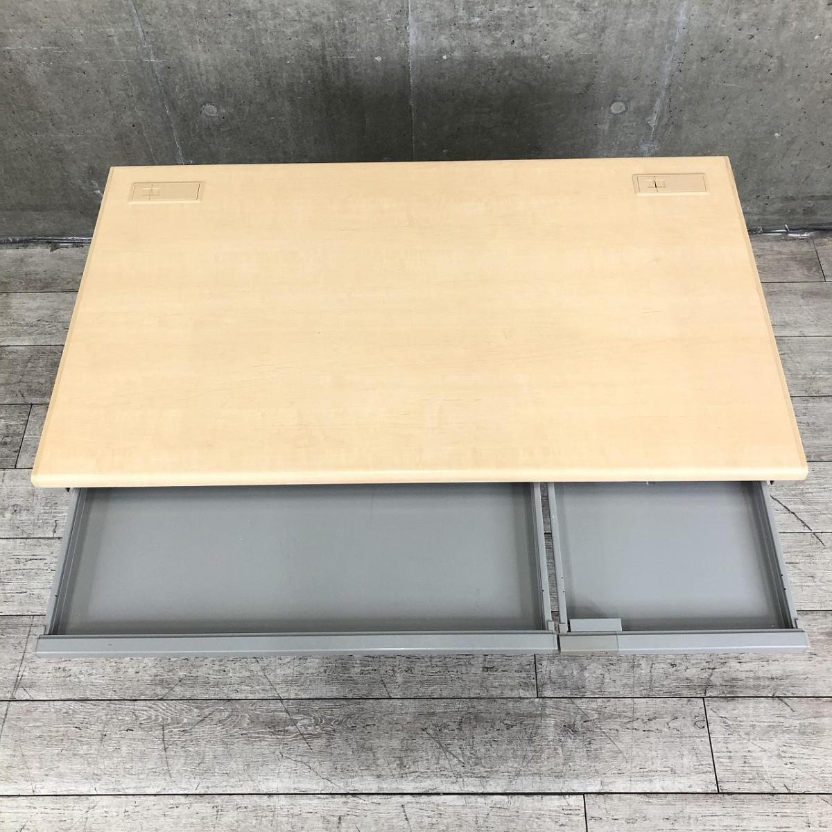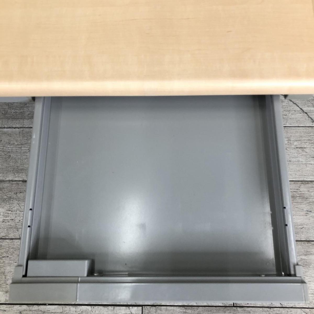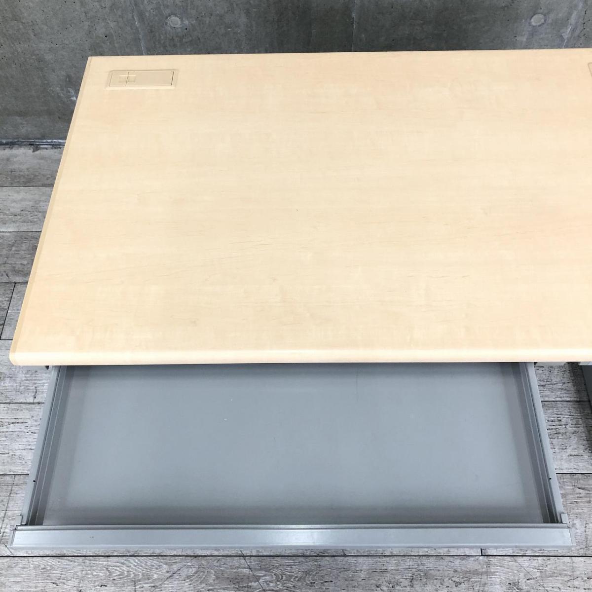 【基本を押さえたシンプルで使いやすい幅1200mmの平机!人気のナチュラル天板!】■ウチダ(UCHIDA)製 フィードエヌ(FEED-N)シリーズ 平机 引き出し付き(シリンダー錠付き) ■配線Sタイプ ■天板:木目ナチュラル 本体:ペールグレー 【入替セールにつき40%OFF!】- つくば店
