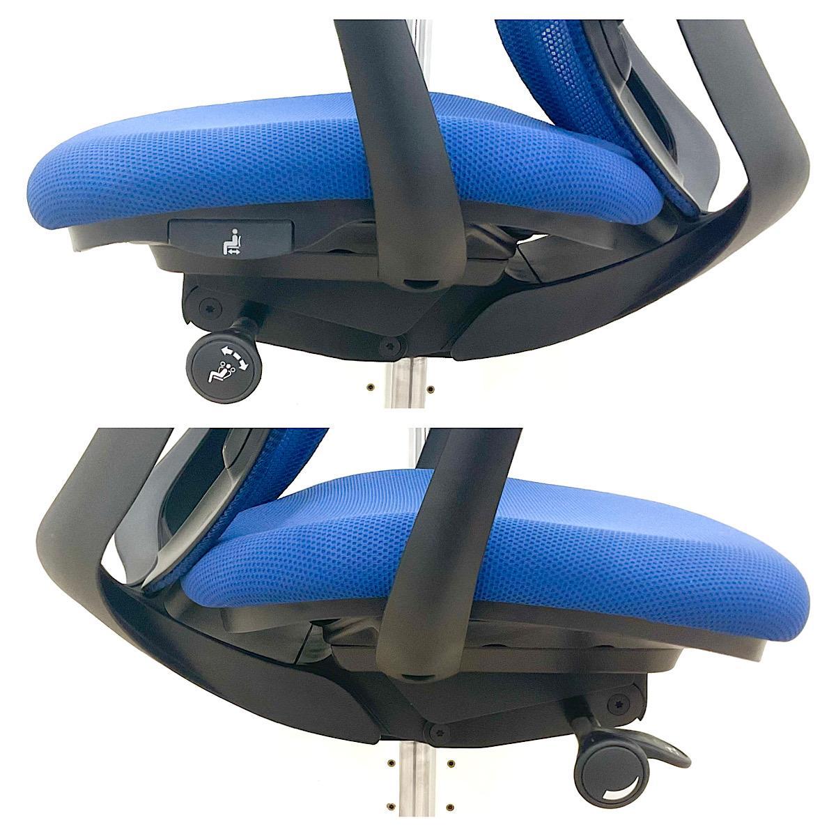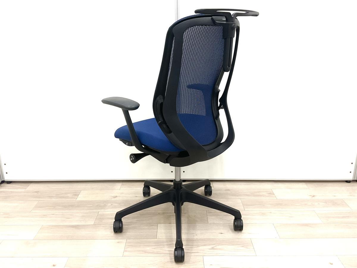 【在庫入れ替え】【訳あり品】ロッキング不良により固定不可となります。【三次元曲面が快適にフィットして背のカーブを変えられる新感覚のオフィスシーティング!】■オカムラ(okamura)製 シルフィ(Sylphy)チェア 肘付き ハイバック 背面メッシュ ■可動肘 ■インディゴブルー×ブラックシェル