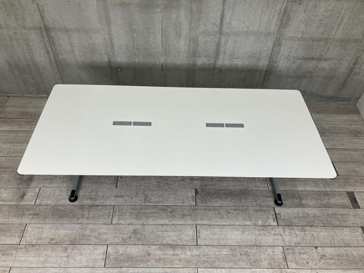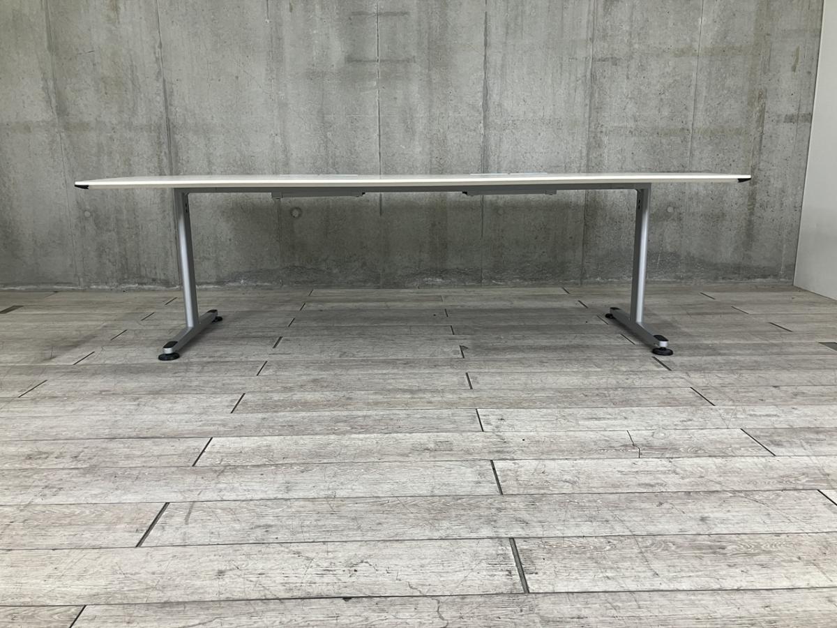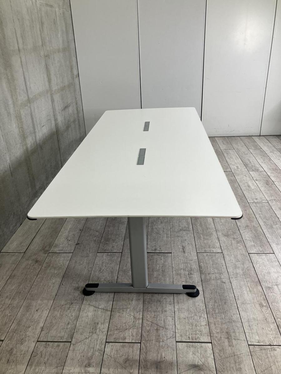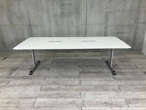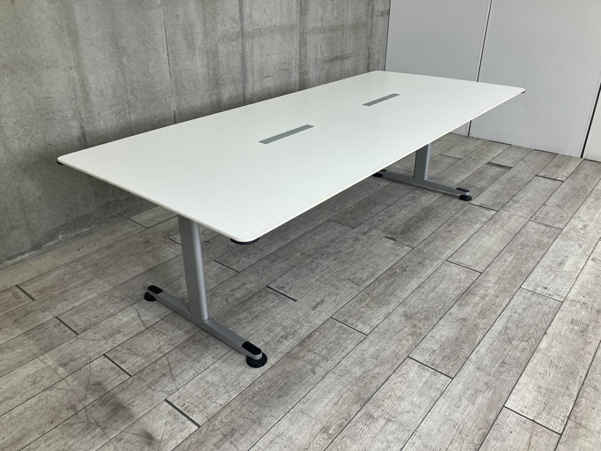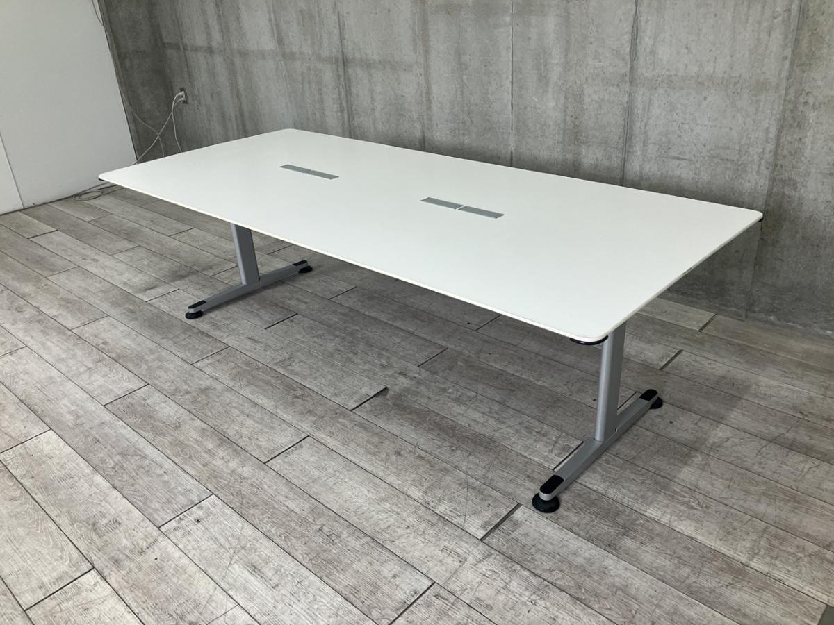 【4/28(火)入荷予定の商品となります!】【配線孔付のミーテイングテーブル!6~8人用の会議に最適!】■コクヨ(KOKUYO)製 ビエナ(VIENA)シリーズ ミーティングテーブル 会議用 W2400×D1050㎜ ■配線ダクト付 ■天板:ホワイト/T字脚:シルバー- つくば店