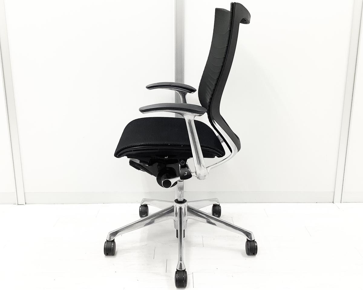 【在庫入替セール】オカムラ バロン ハイバックモデル 背:メッシュ 座:クッション 張地:ブラック 脚:ポリッシュ アジャストアーム搭載 ※リクライニングロックに不良があるため特価品