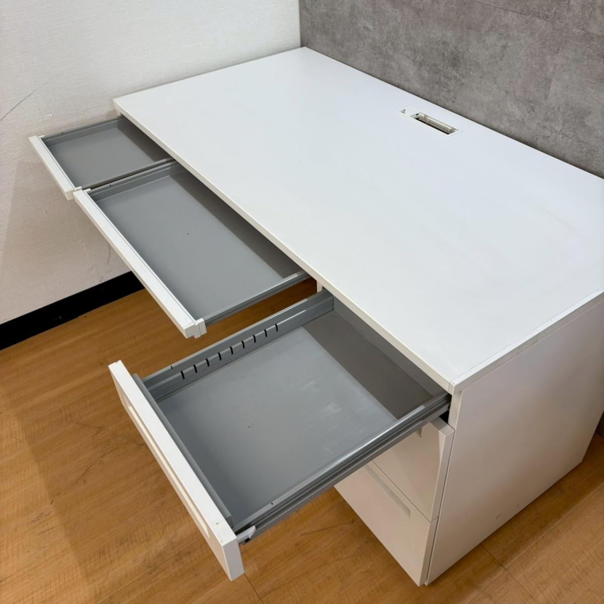国内メーカー製 W1400mm片袖机 本体ホワイト ※高さ700mm