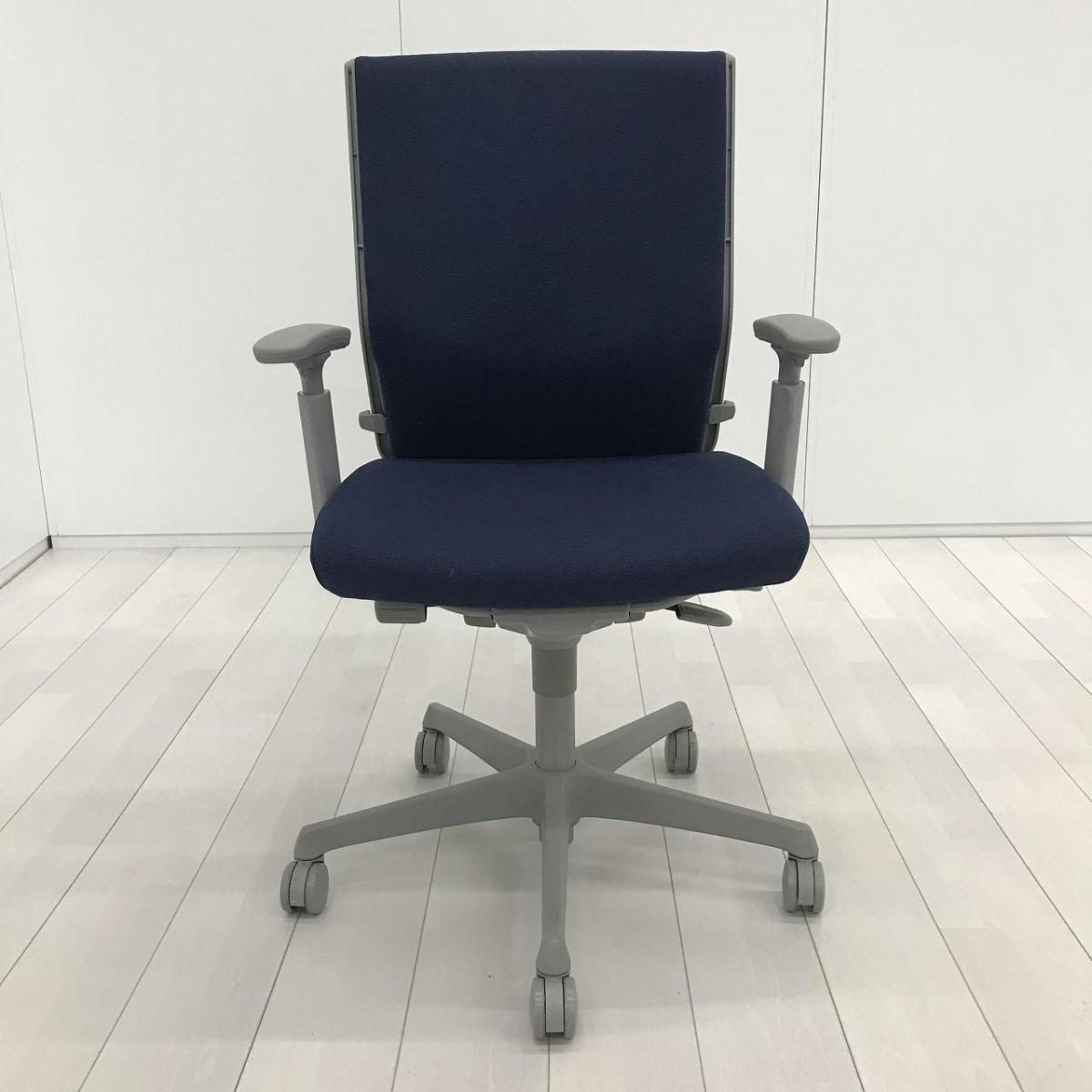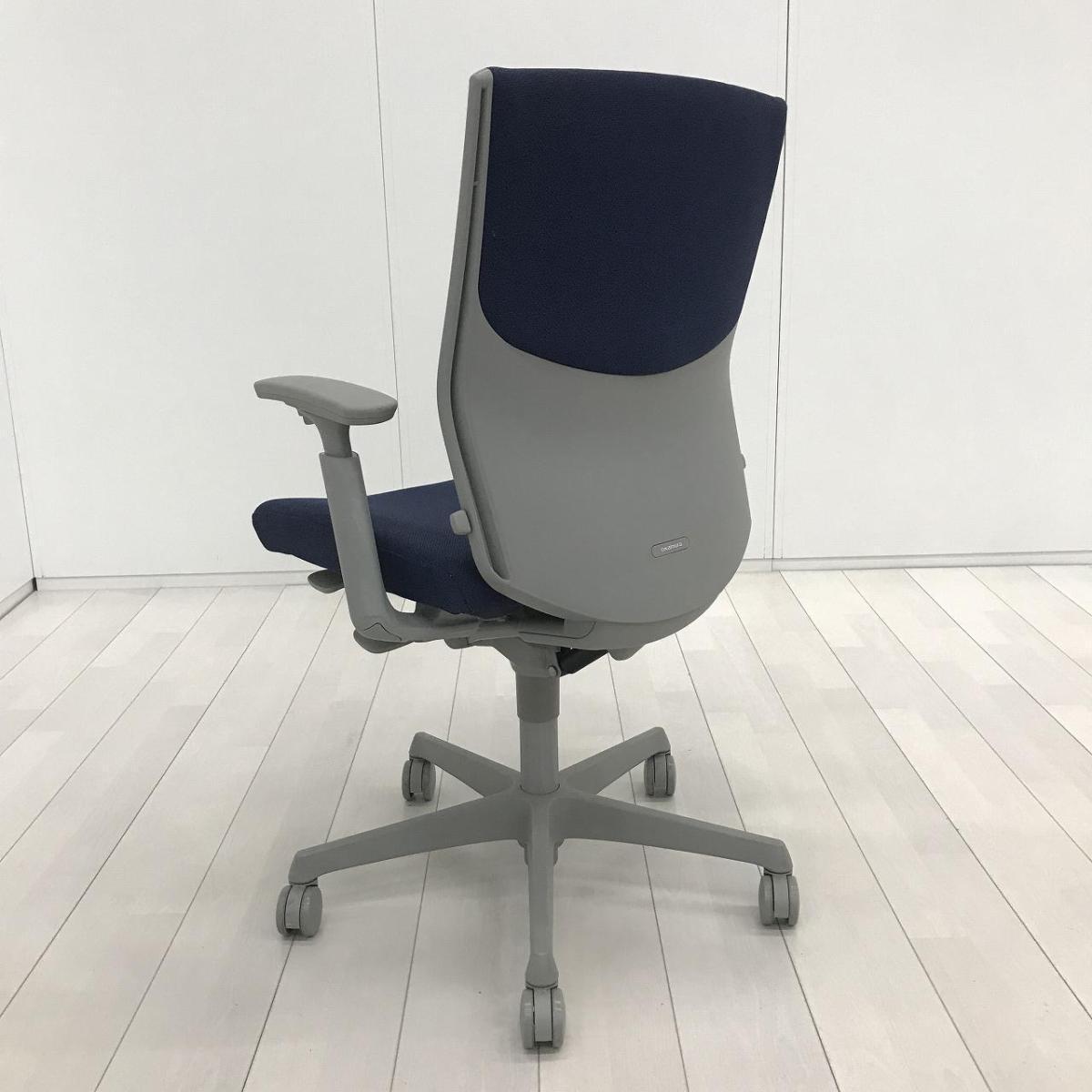 【長時間のデスクワークもランバーが快適にサポート!オカムラ製の人気チェアが入荷!】■オカムラ(okamura)製 エスクード(ESCUDO)チェア 肘付ハイバック クッションタイプ ■可動肘 ■ダークブルー×グレーシェル- 茨城南店