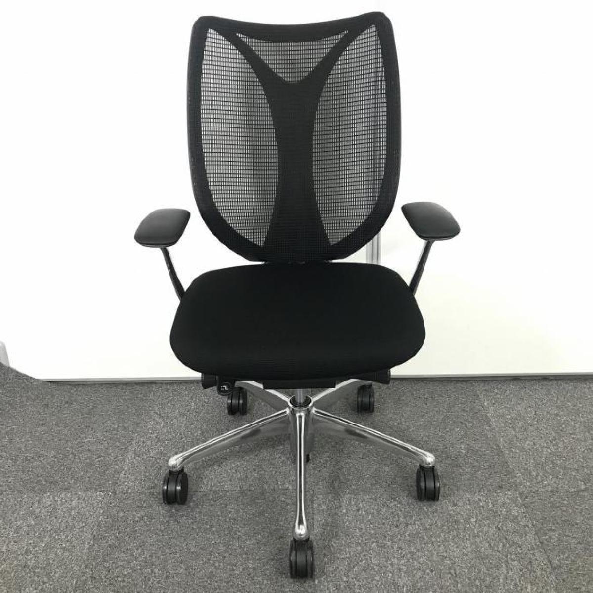 大人気!オカムラ製のメッシュチェアが入荷! 座面・背面が広めでしっかりしており、前傾機能が付いた高級チェアです! ■オカムラ/サブリナ/ブラック デザインアーム付 ホワイトボディ