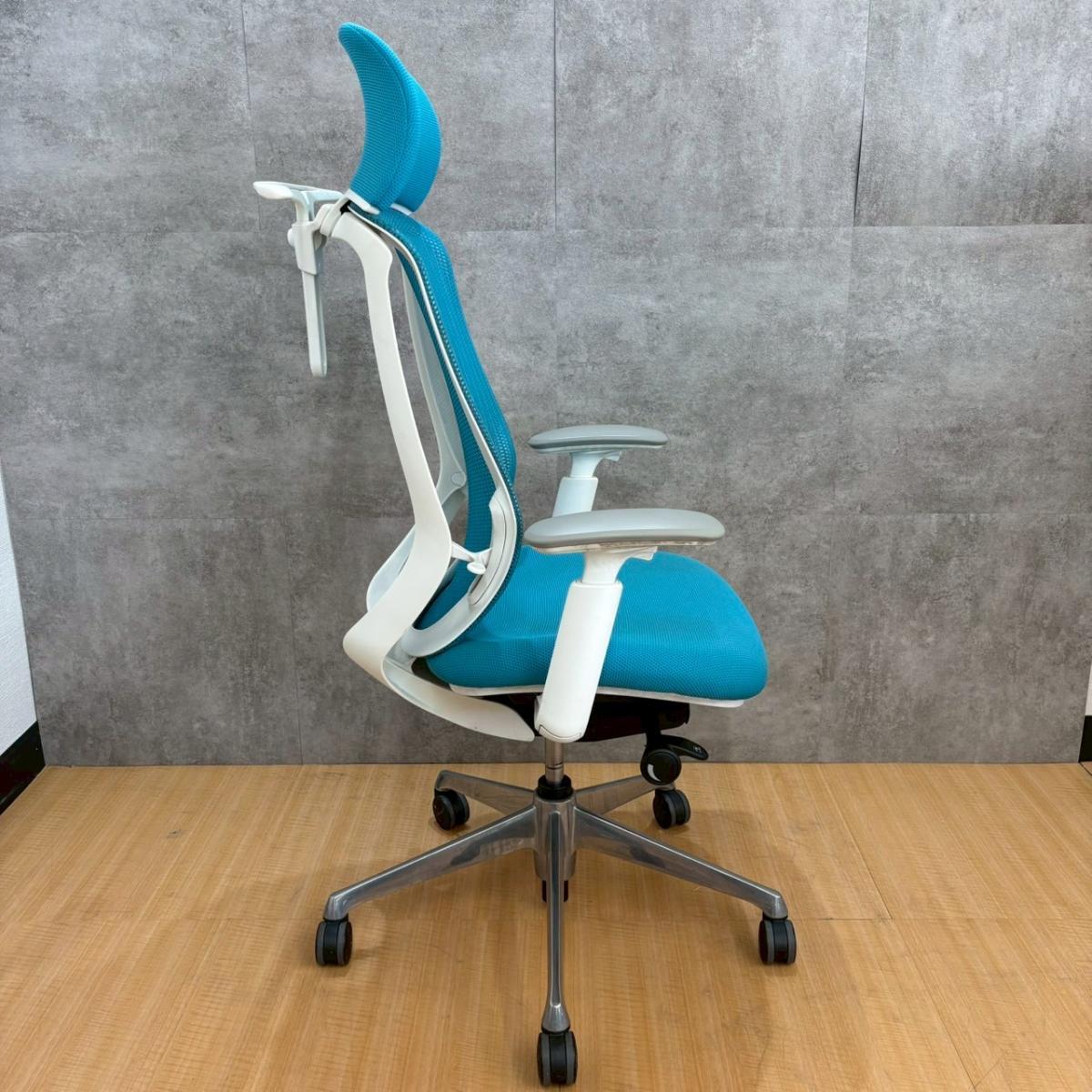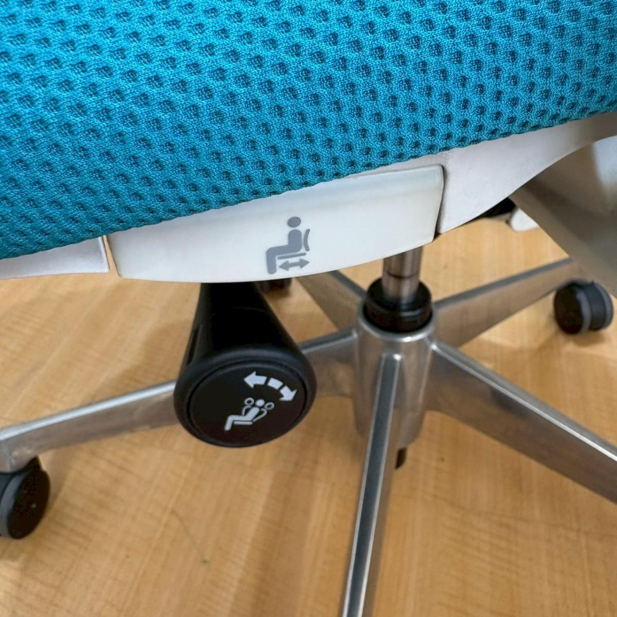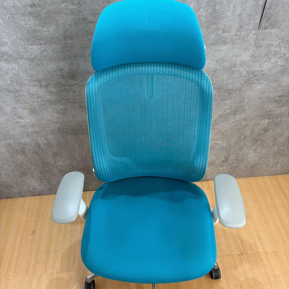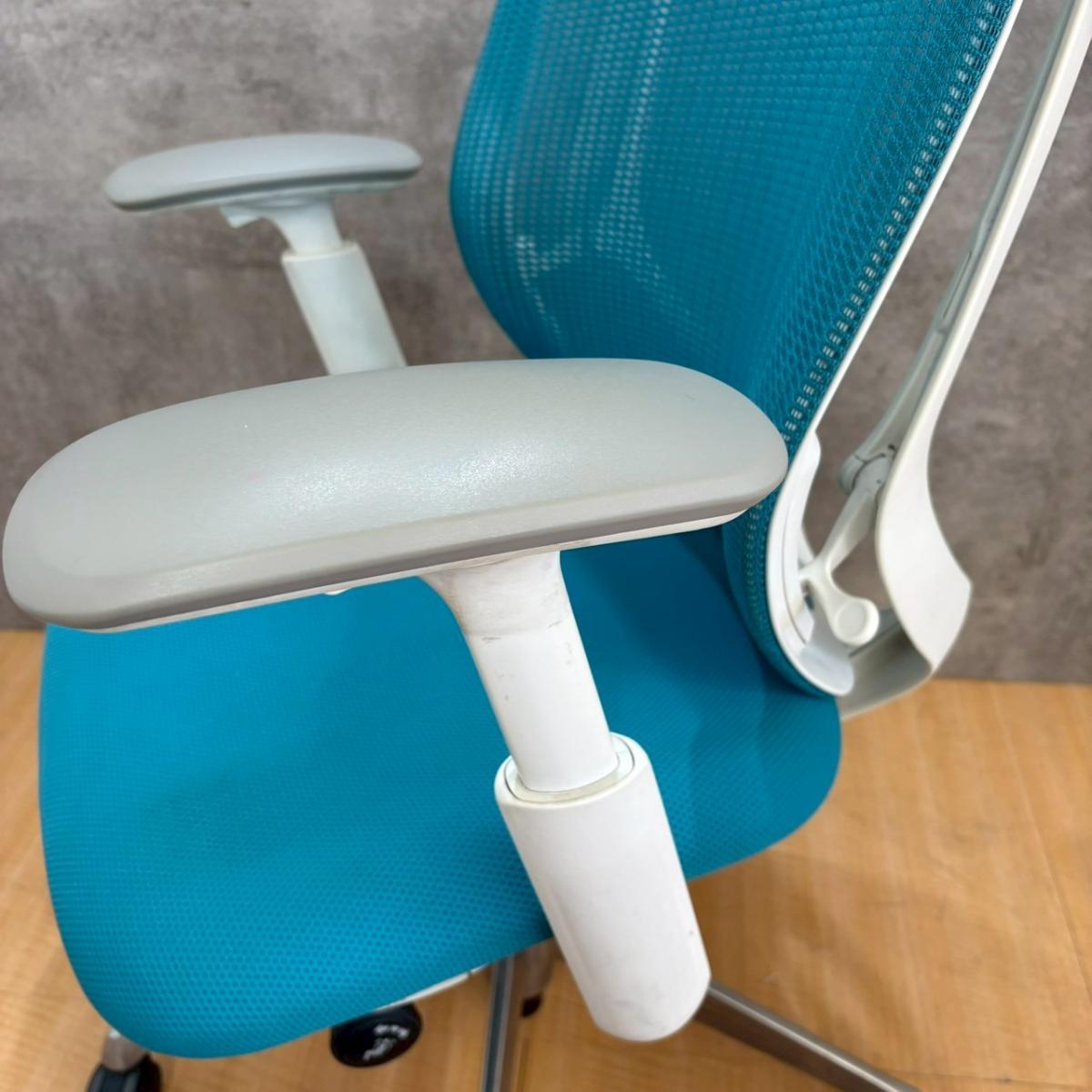 【訳アリ品】背のカーブを変えられる!新感覚のオフィスシーティング!包み込まれるような快適な座り心地! ■オカムラ/シルフィーチェア/ブルーグリーン 可動肘付 ※上下昇降不良