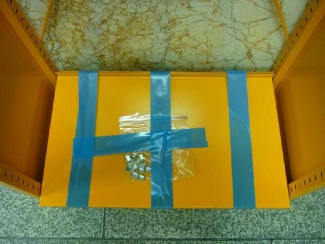 - 部材なし多数棚板補強具等が多数足りない。