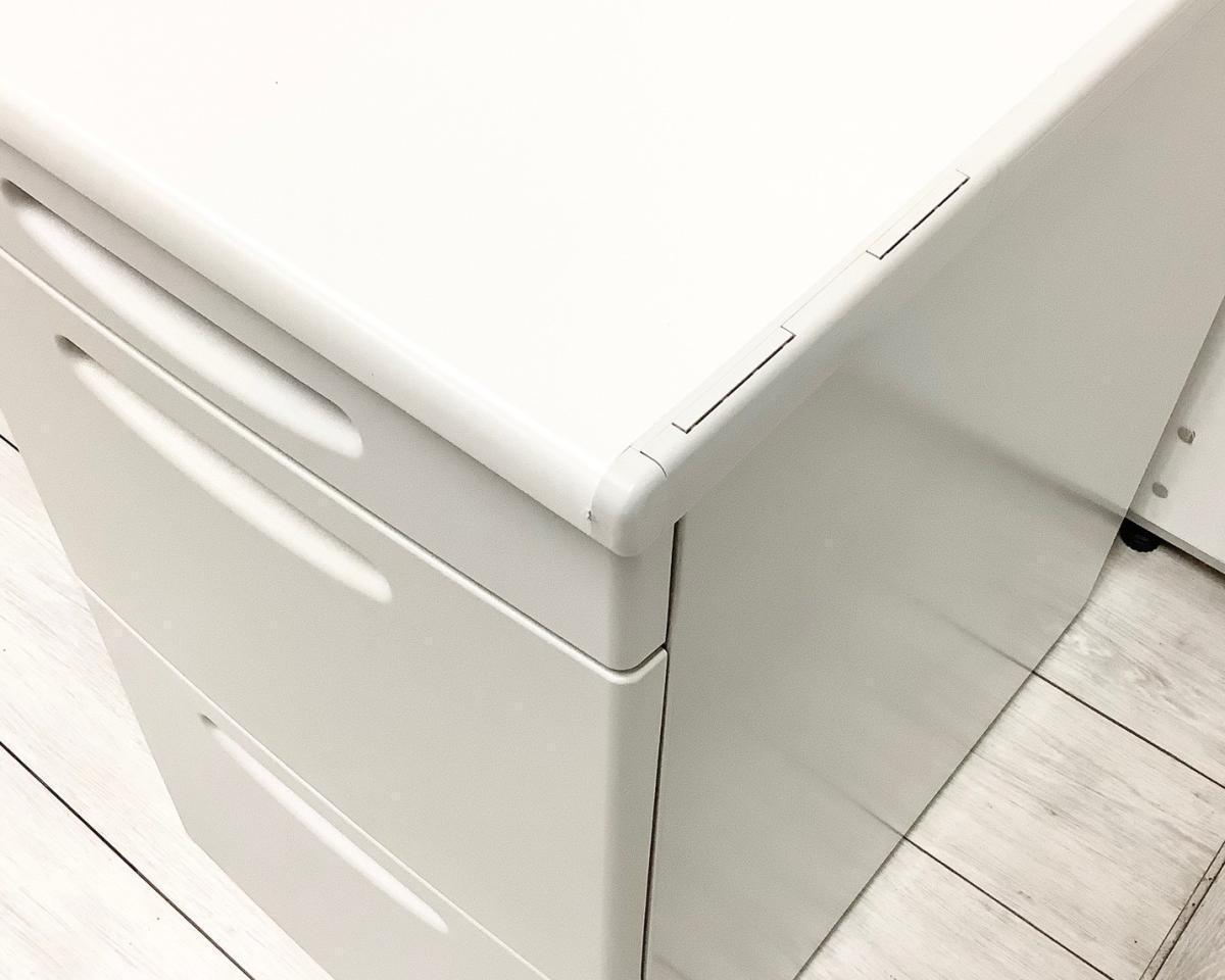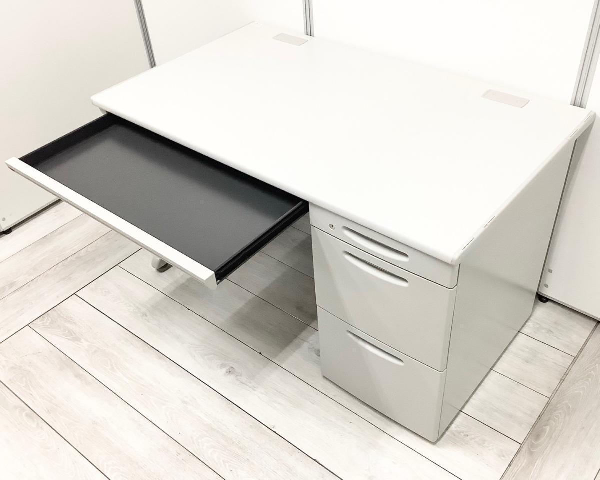 袖引き出し付きで収納力に優れ、書類や備品をすっきり整理可能。