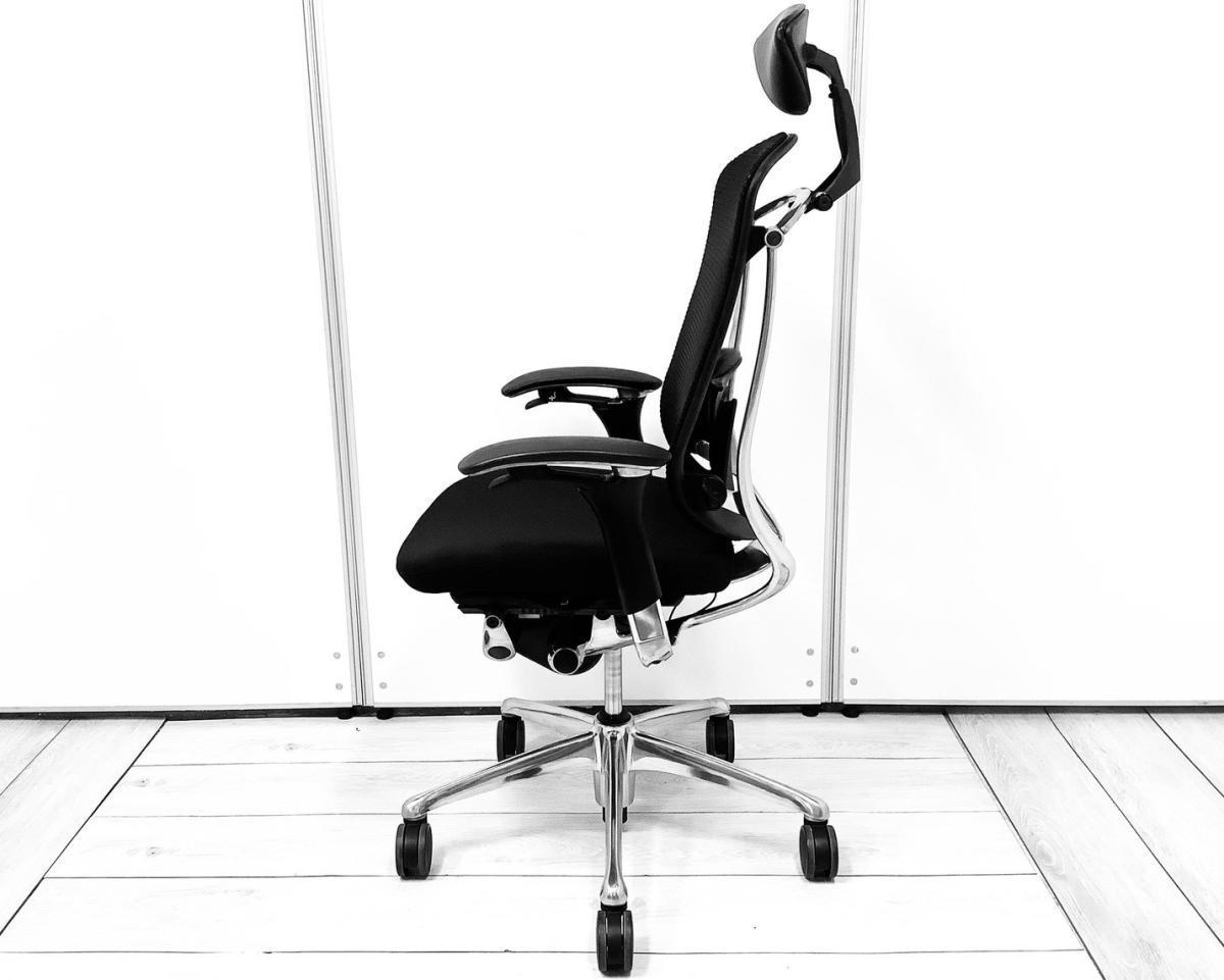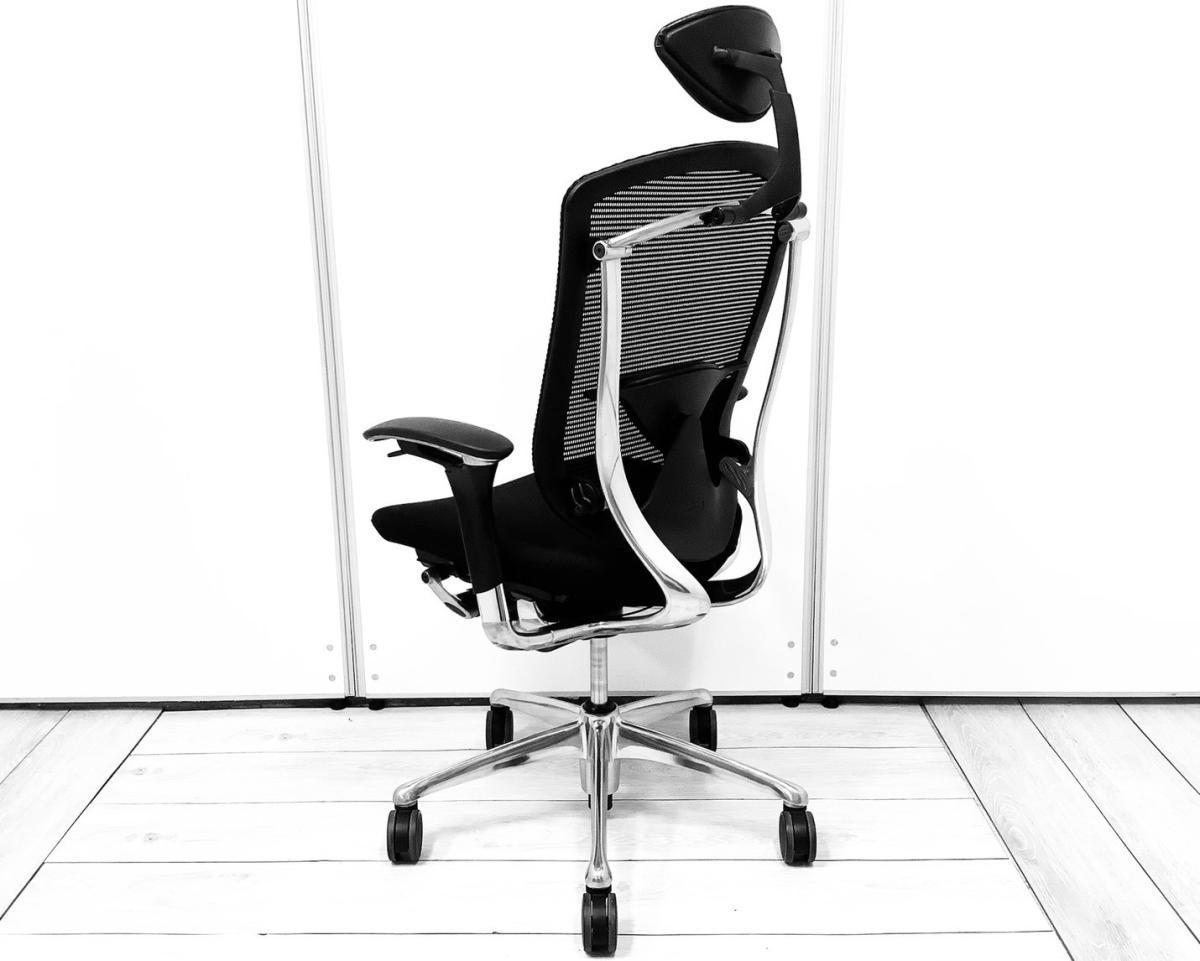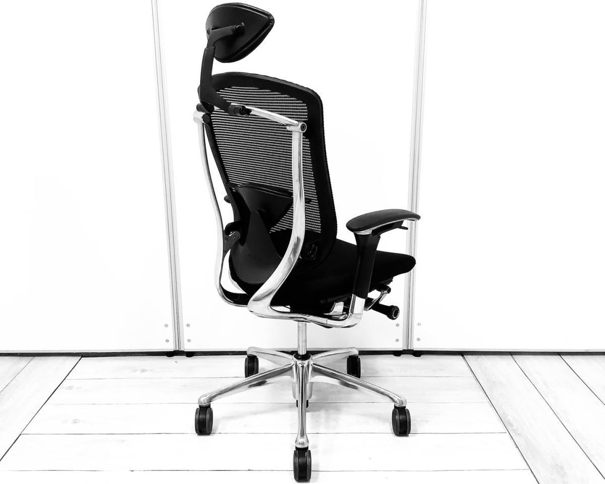 【世界で認められた革新的タスクチェア!人間工学に基づいた快適な座り心地を実現!】■オカムラ(okamura)製 コンテッサ(Contessa)チェア ハイバック肘付き 背面メッシュ ■可動肘・ランバーサポート・ヘッドレスト付き ■ブラック