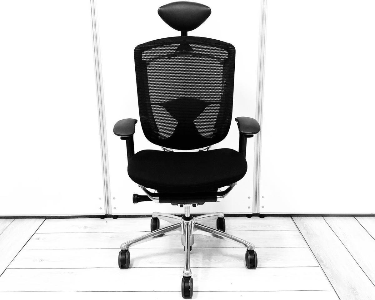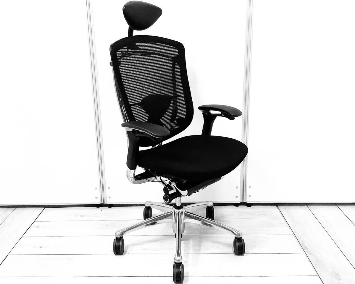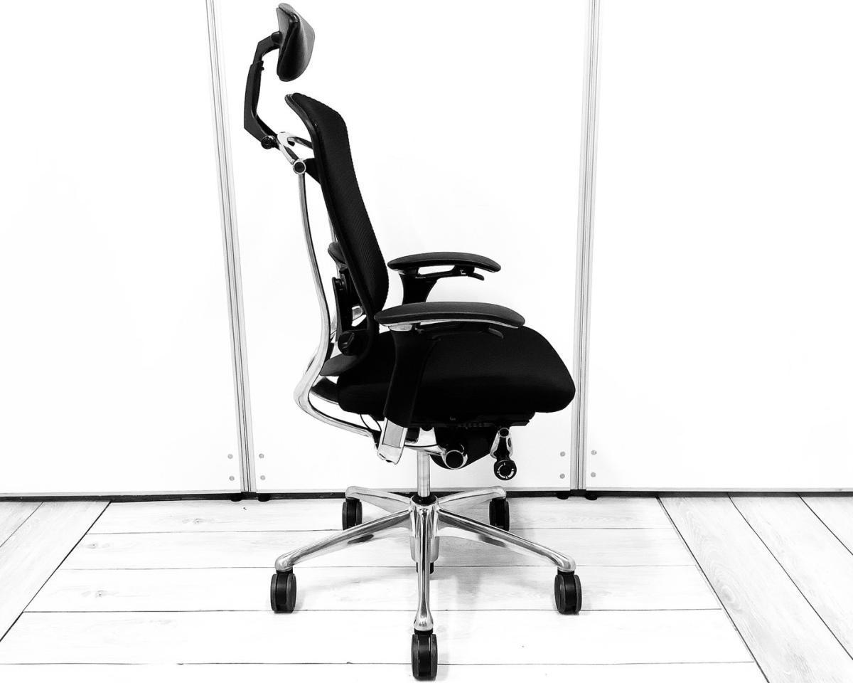 【世界で認められた革新的タスクチェア!人間工学に基づいた快適な座り心地を実現!】■オカムラ(okamura)製 コンテッサ(Contessa)チェア ハイバック肘付き 背面メッシュ ■可動肘・ランバーサポート・ヘッドレスト付き ■ブラック