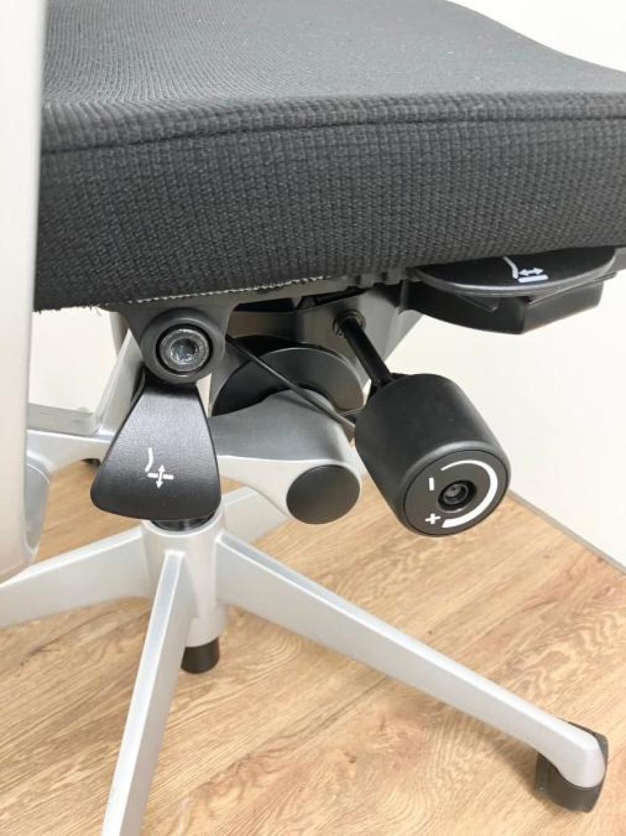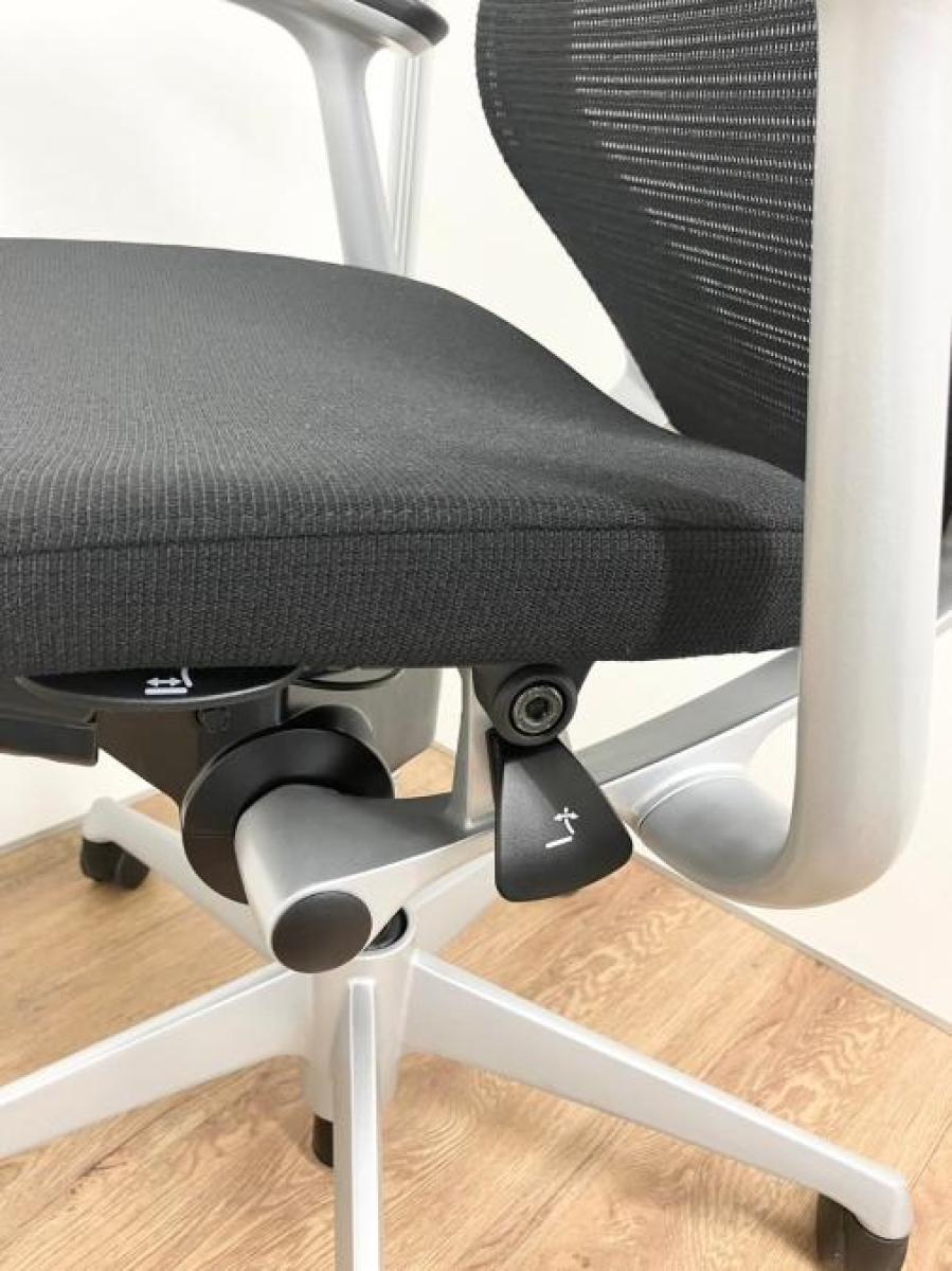 もちろん座り心地もコンテッサの直系ですから快適です。座面の素材はクッションとメッシュの2タイプあります。私、個人的には座面の中心部分でも外側でもテンションが変わらないクッション素材が、足を閉じても開いても快適なので推しです!"