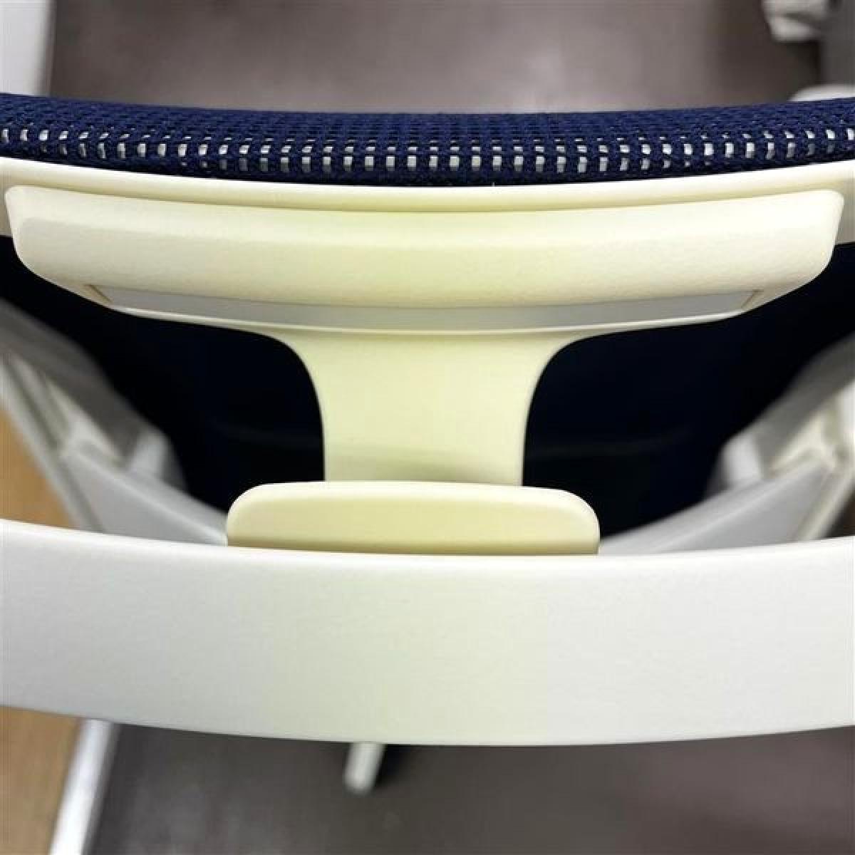 【在庫入替セール】【2021年製で状態良好】オカムラ フィノラ ハイバック 肘付きチェア(アジャストアーム) ダークブルー×ホワイトボディ×ホワイト脚 座クッションの確かな座り心地 コートハンガー&ランバーサポート搭載