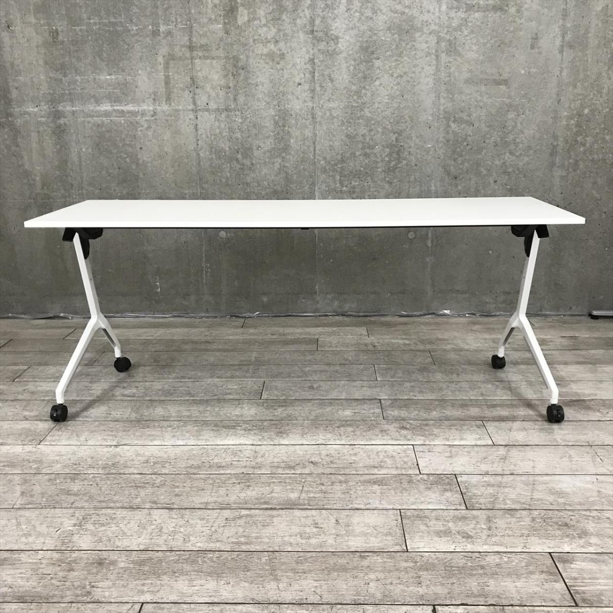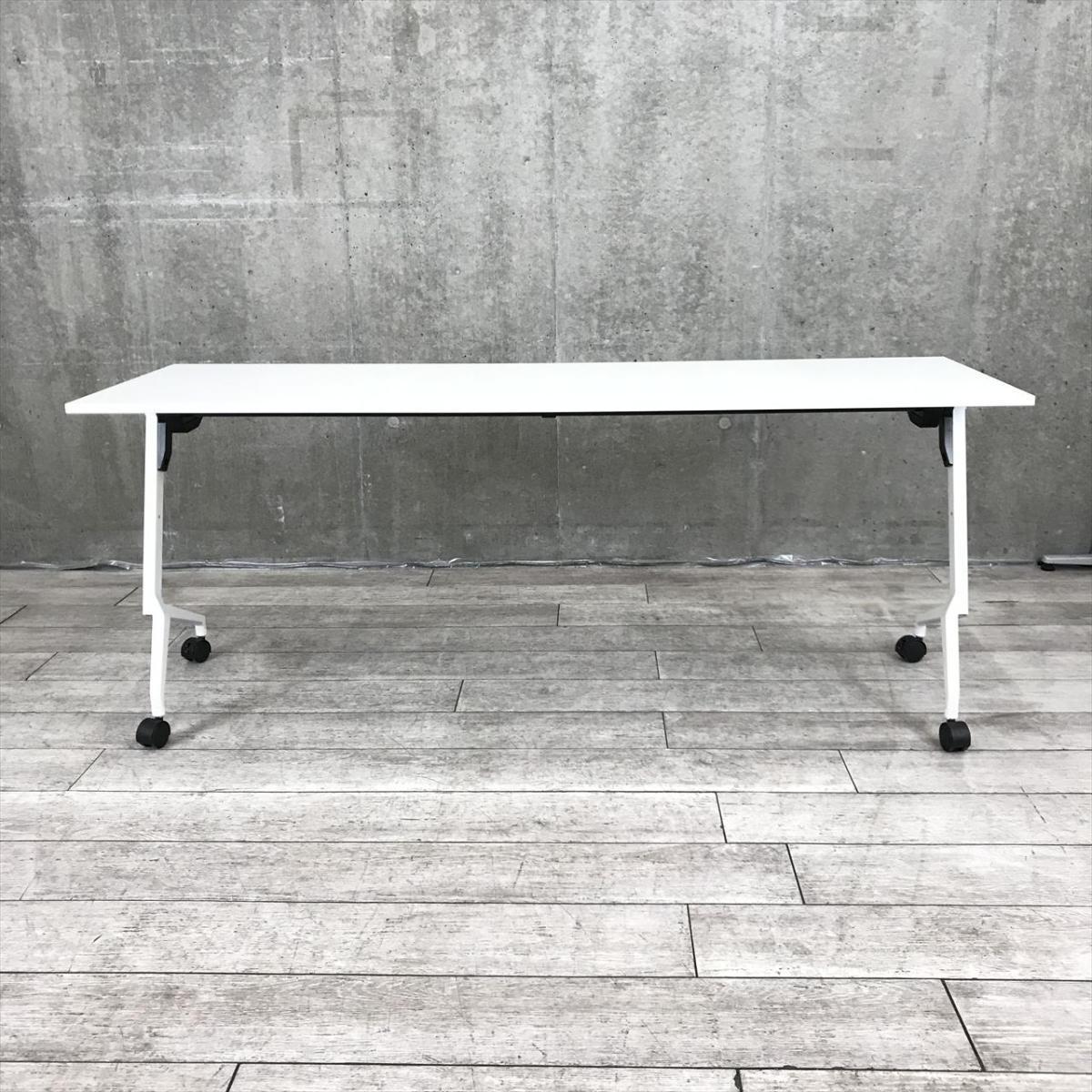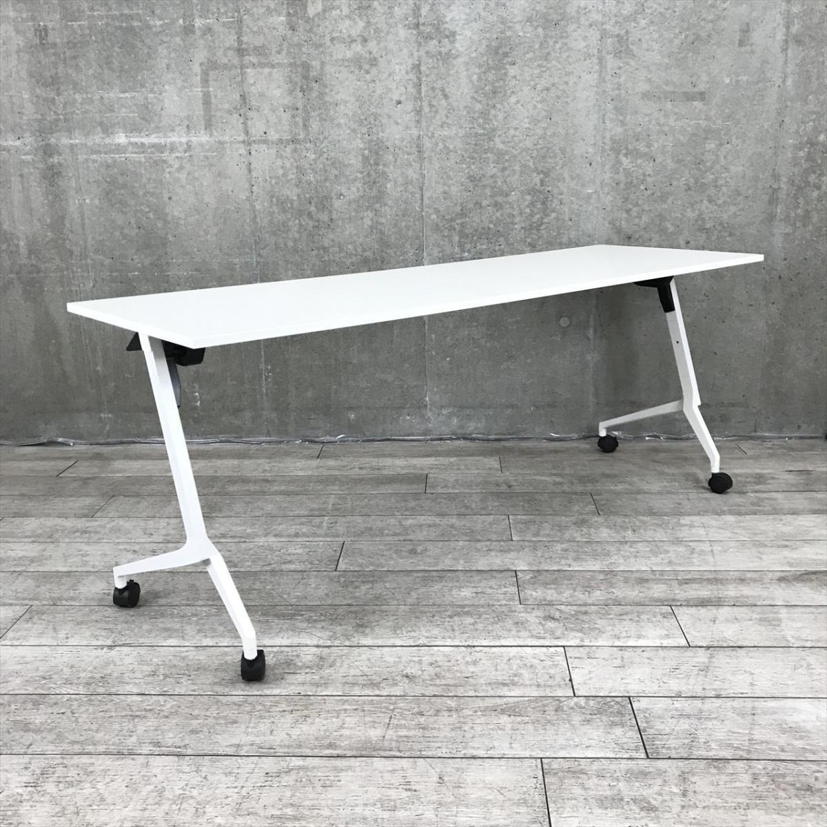 揃い/おすすめレア イトーキ(ITOKI) スレントシリーズ(Slent) サイドスタックテーブル 折り畳み W1800㎜ ■幕板なし ■キャスター付 ■ホワイト 【会議やセミナーで大活躍!】- 千葉店