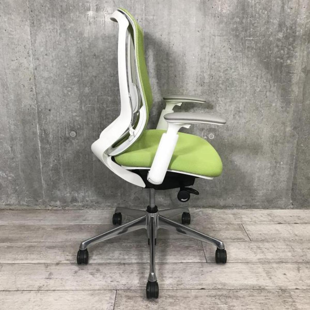 5/1入荷【前傾チルト機能付き】【オカムラ製品で最も人気を集める高機能チェア!】■オカムラ(okamura)製 シルフィー(Sylphy)チェア 肘付 ハイバック 背面メッシュ 昇降レバー丸型 ■可動肘 ■ライムグリーン×ホワイトシェル【AD】- 宇都宮サテライト