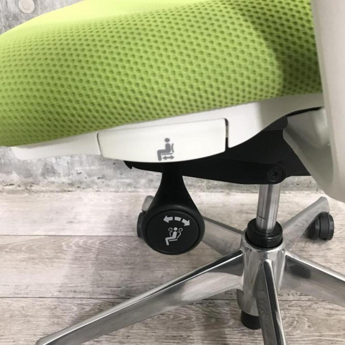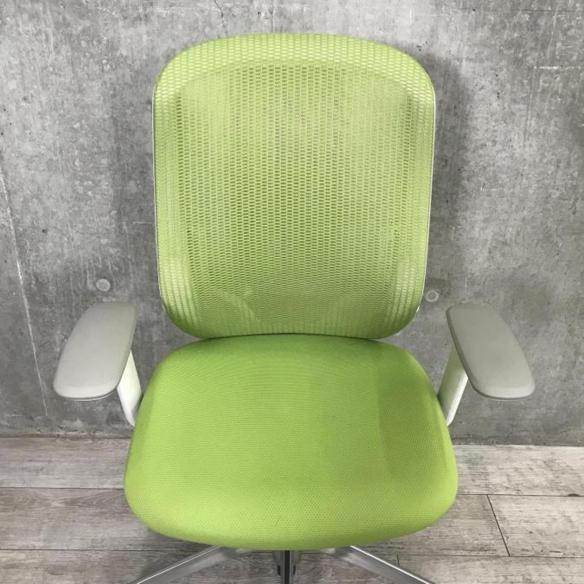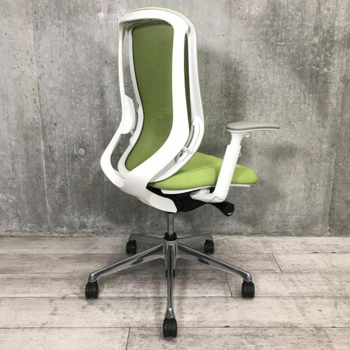 【前傾チルト機能付き】【オカムラ製品で最も人気を集める高機能チェア!】■オカムラ(okamura)製 シルフィー(Sylphy)チェア 肘付 ハイバック 背面メッシュ 昇降レバー丸型 ■可動肘 ■ライムグリーン×ホワイトシェル- 春日部・越谷店