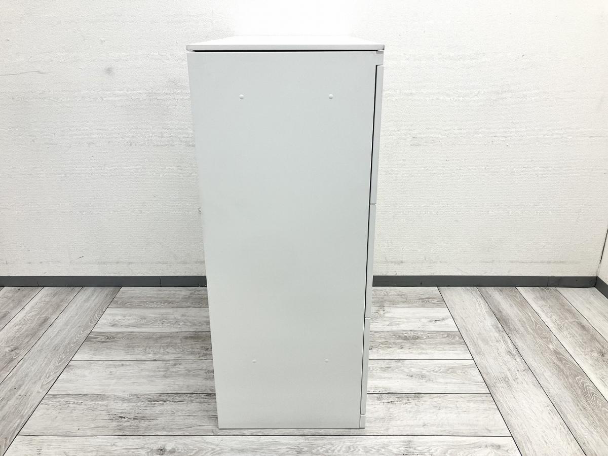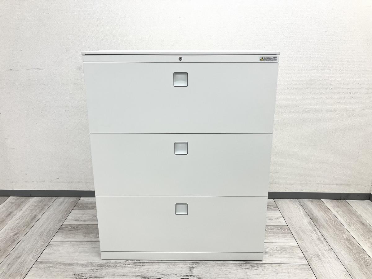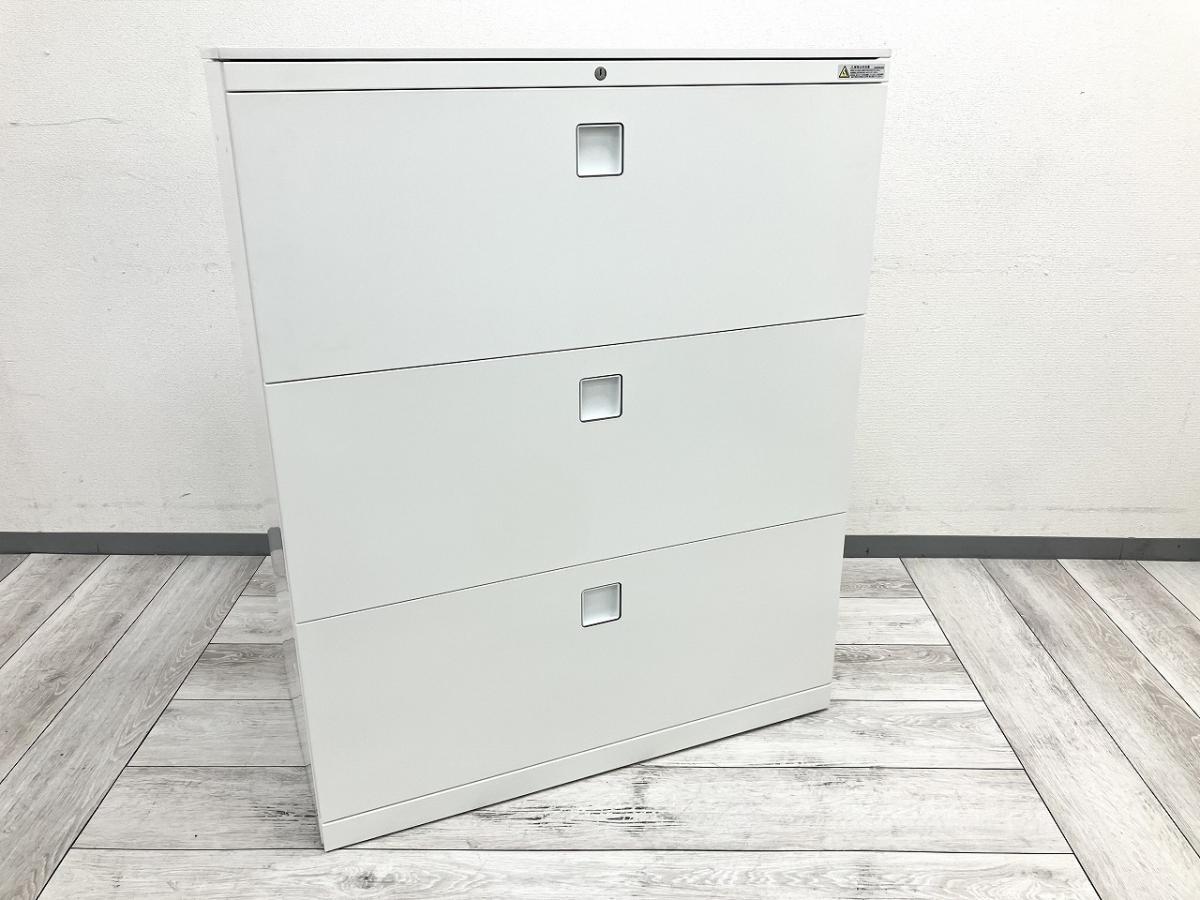 【在庫入替セール】オカムラ レクトライン 3段ラテラル書庫 ホワイト天板 シリンダー錠 鍵付き ※取っ手部分に若干日焼けあり