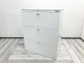 【在庫入替セール】オカムラ レクトライン 3段ラテラル書庫 天板無し シリンダー錠 鍵付き ※取っ手部分に若干日焼けあり
