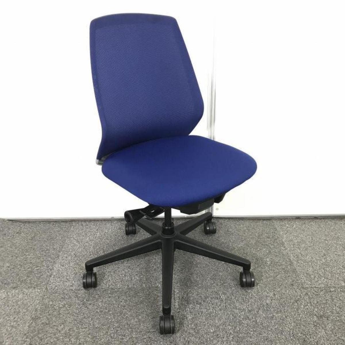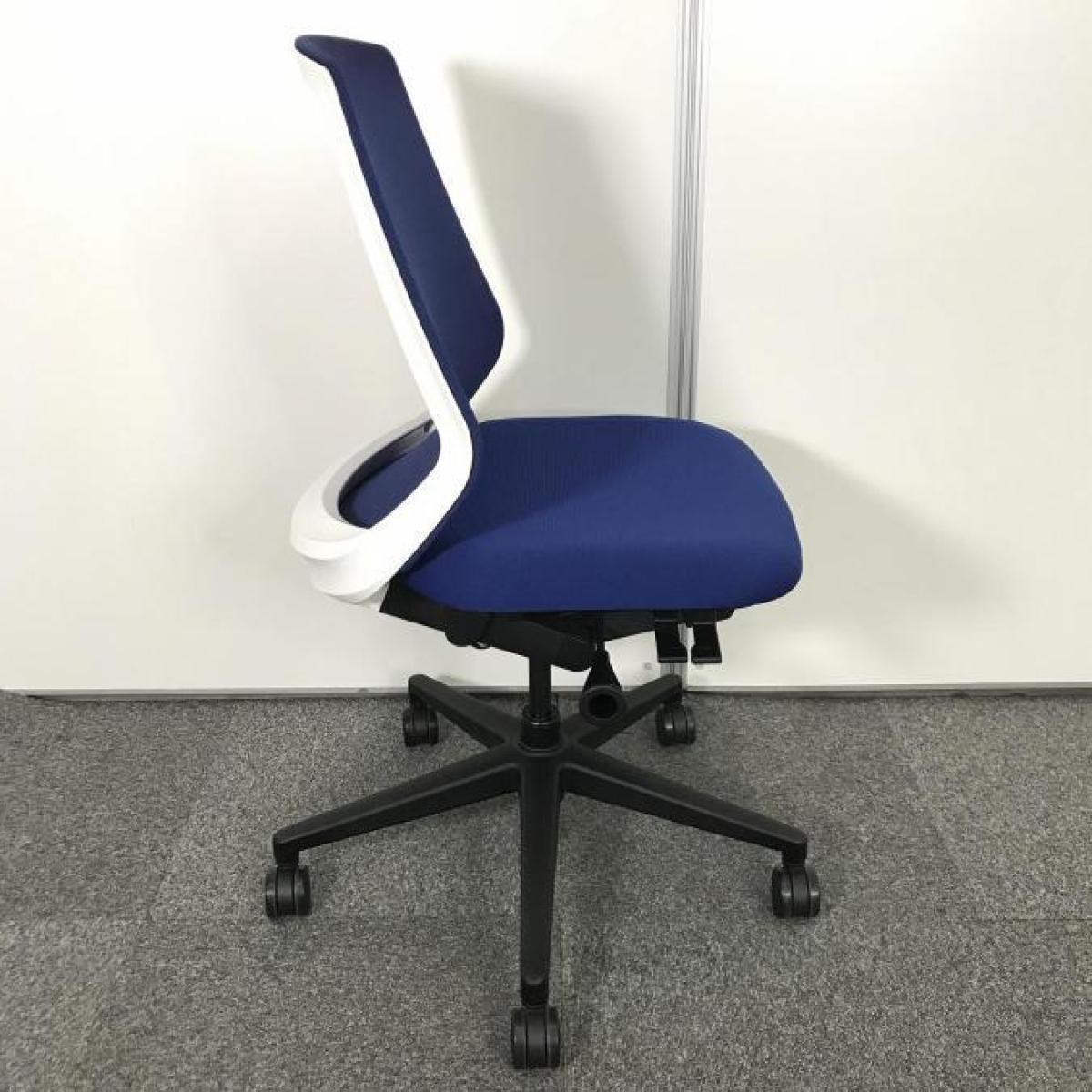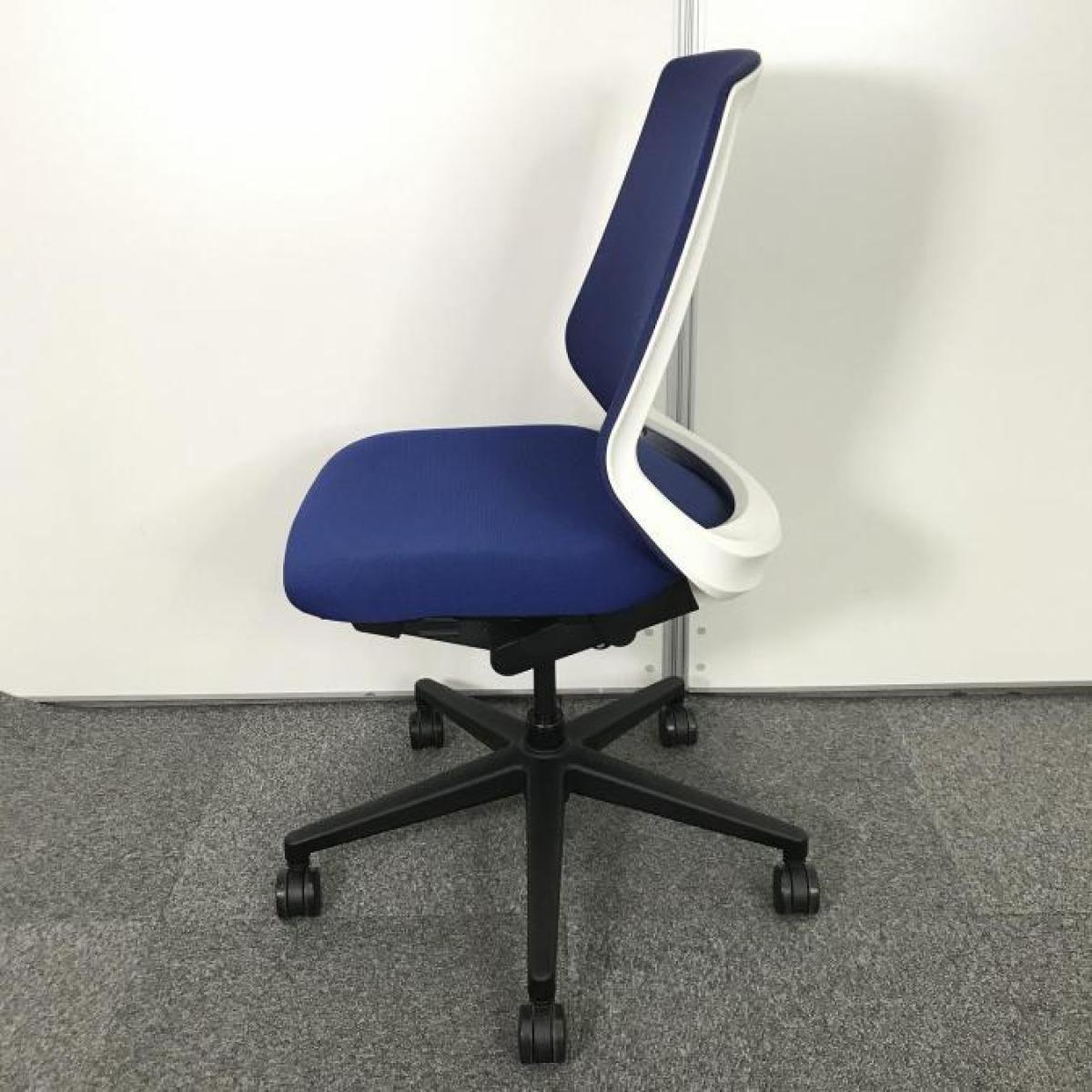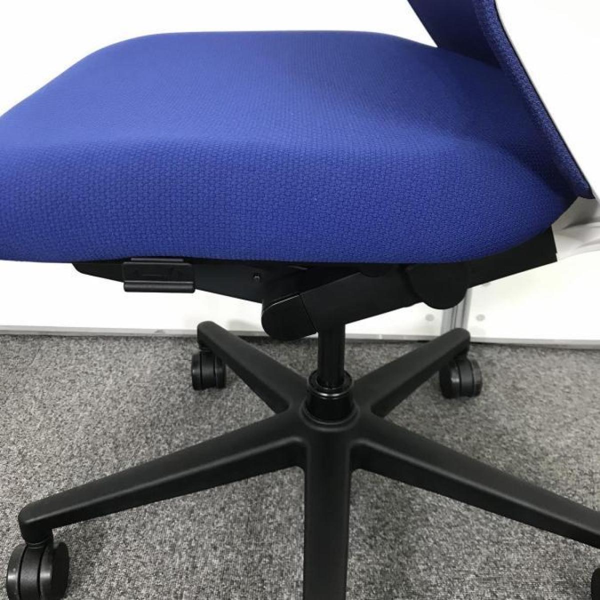 落ち着いたブルーカラーのファブリック仕様で、オフィスや在宅ワークのどちらにもなじみやすいデザイン。