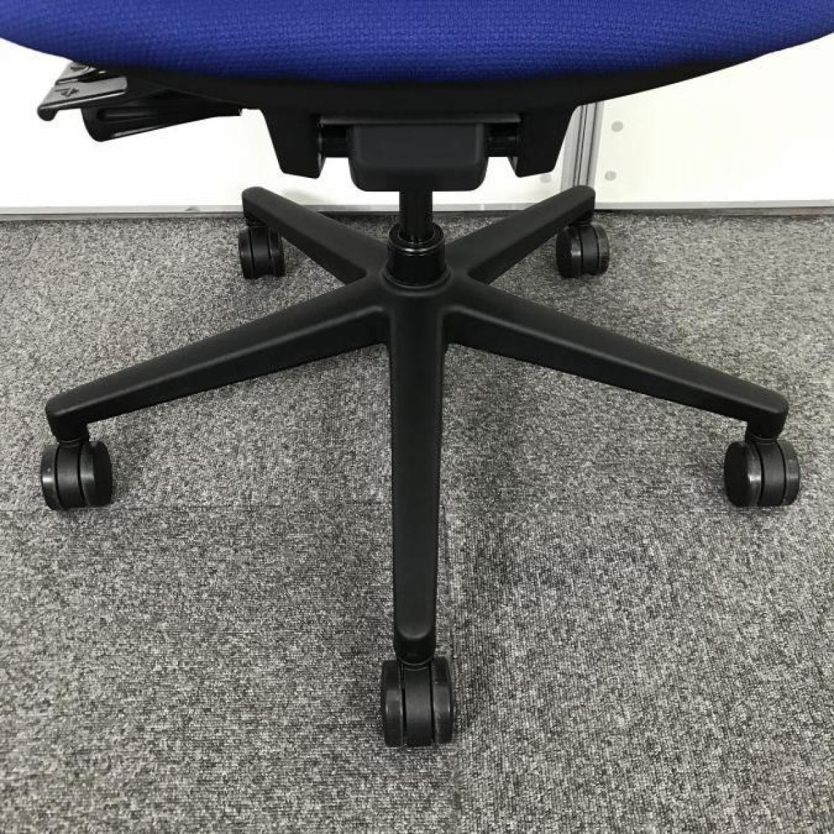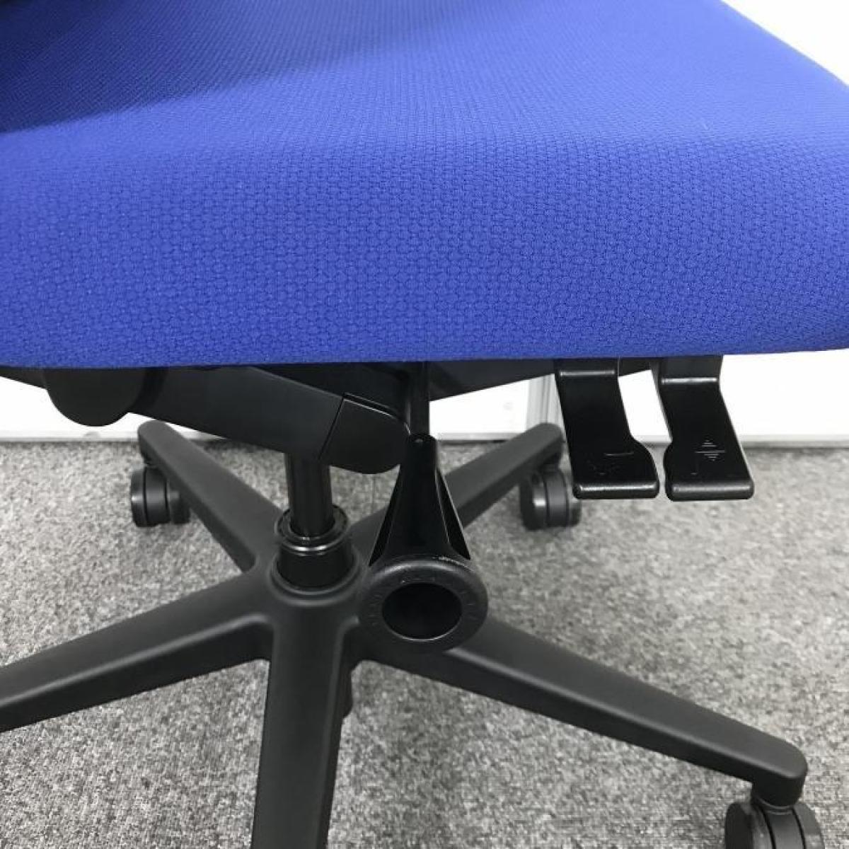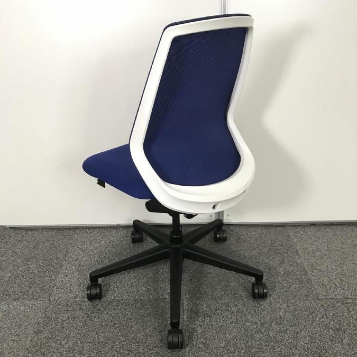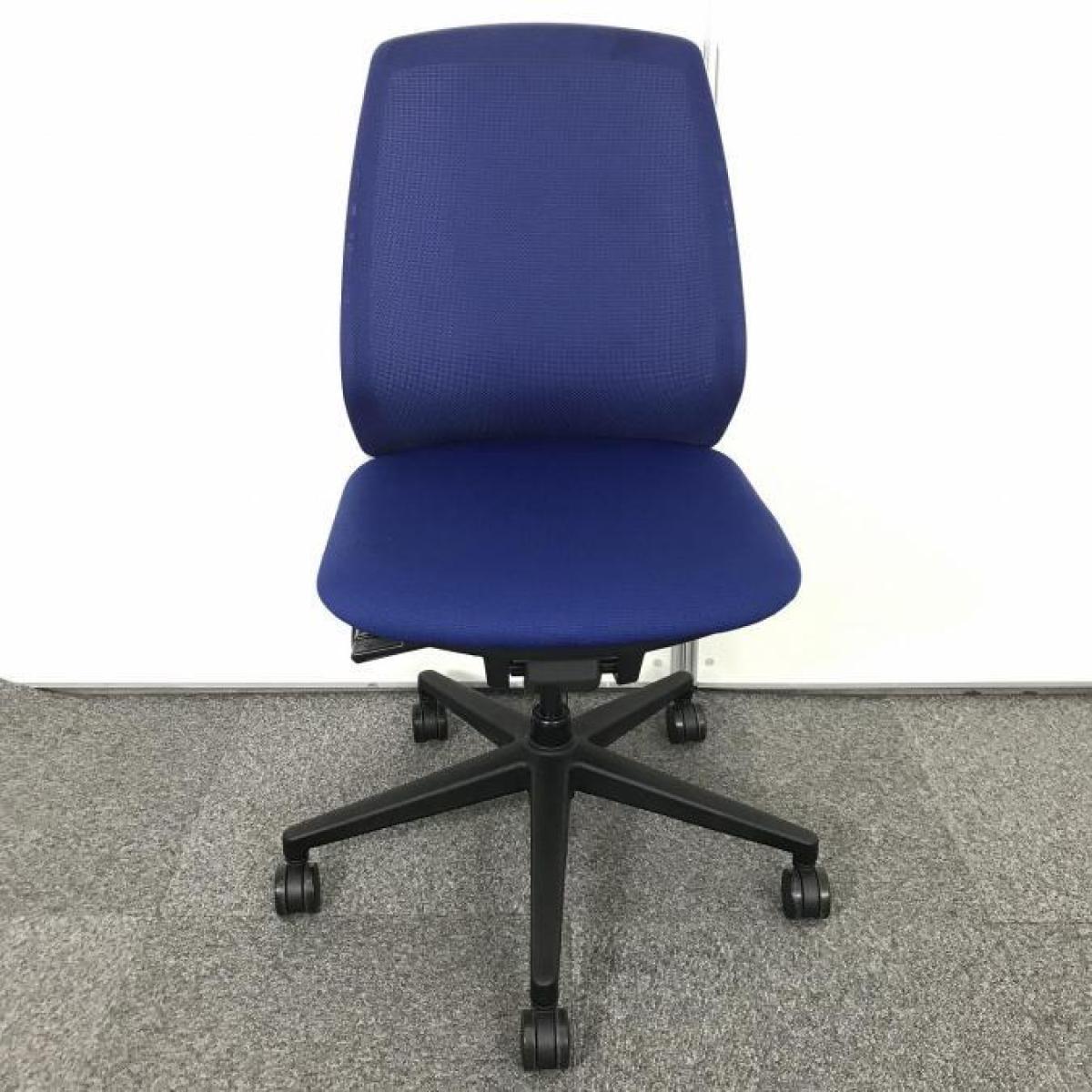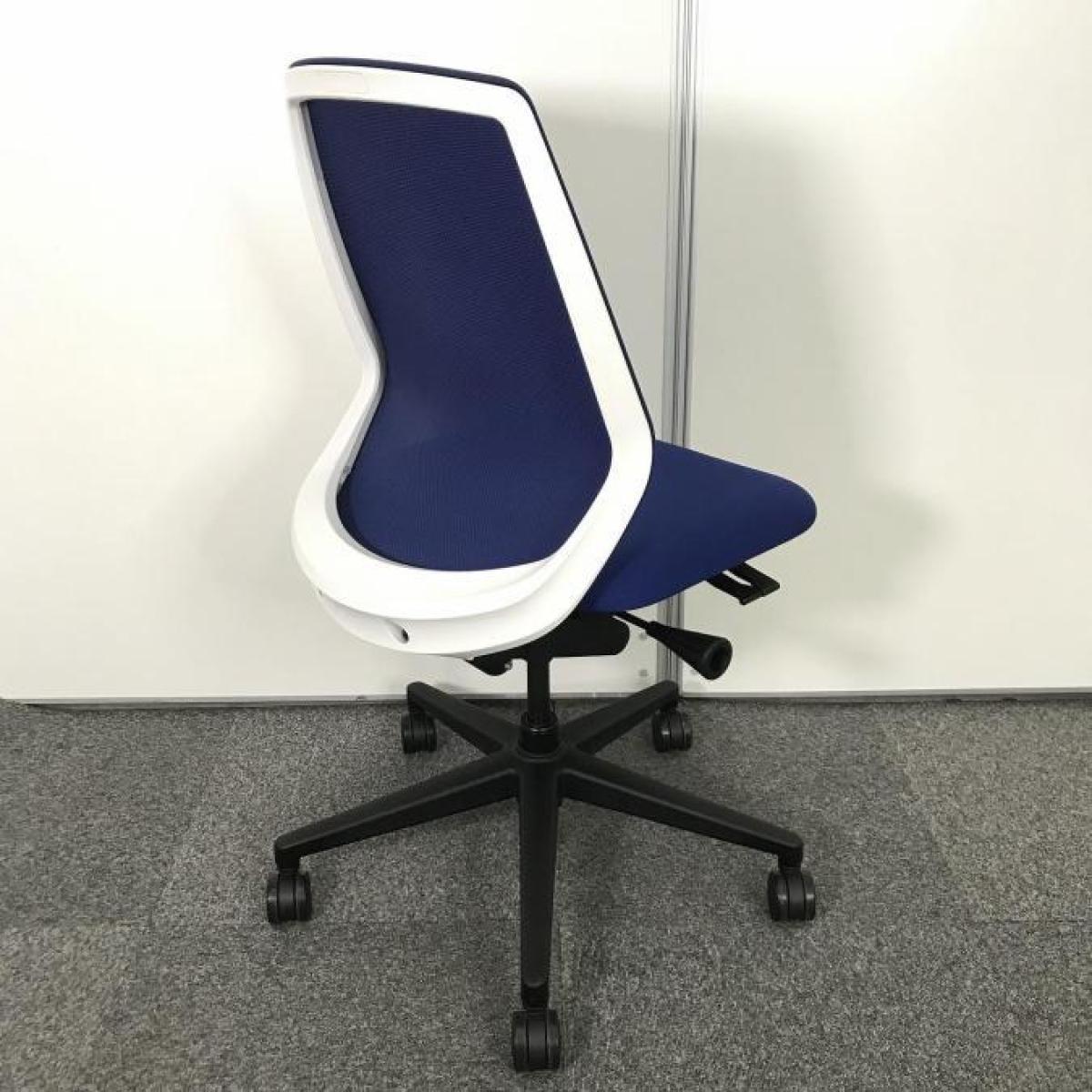 落ち着いたブルーカラーのファブリック仕様で、オフィスや在宅ワークのどちらにもなじみやすいデザイン。
