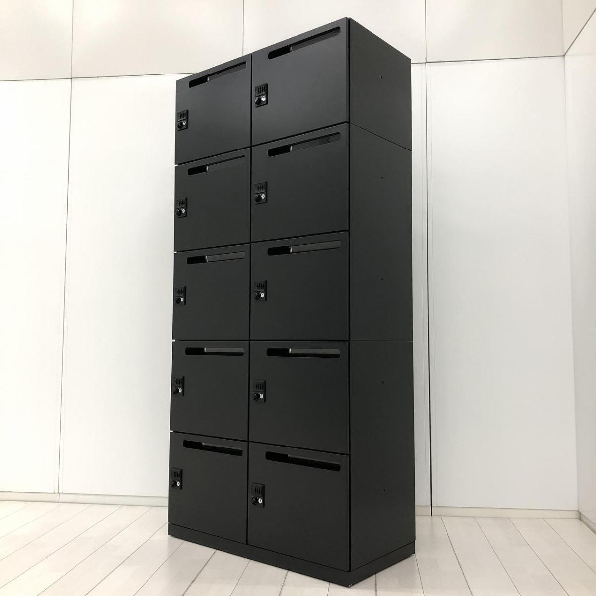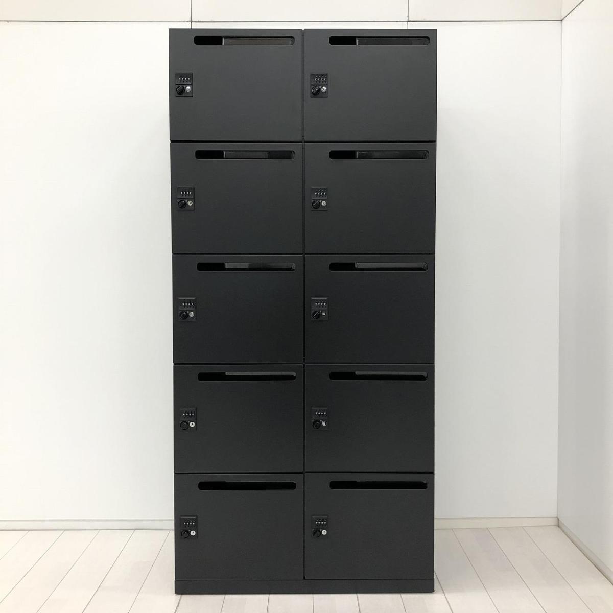 【コレ1台で10人分の収納力!省スペースに多人数分!】■イナバ(INABA)製 イプリア(ipre)シリーズ 10人用パーソナルロッカー モバイルロッカー メールロッカー H1920mm 投函口付 ■ダイヤル錠 ■リードブラック- 春日部・越谷店