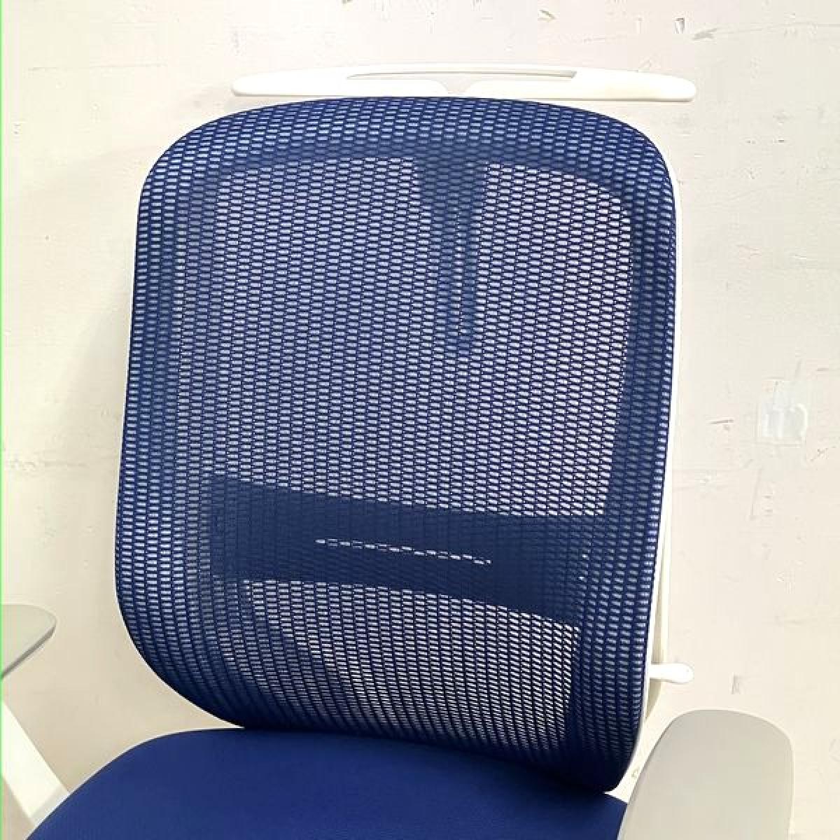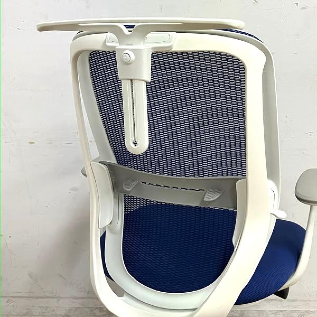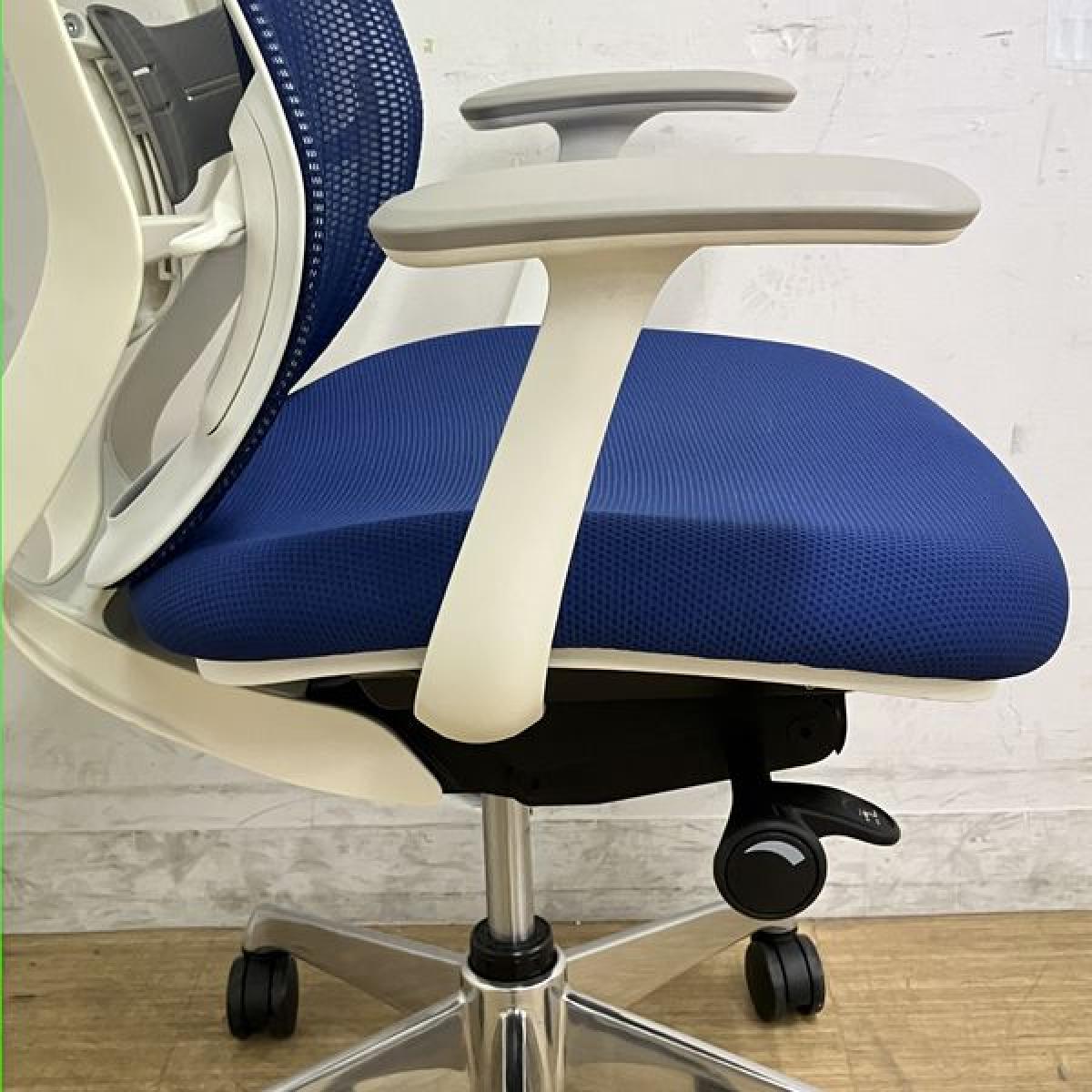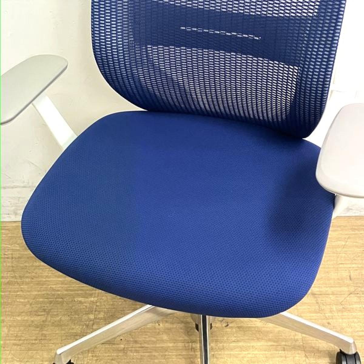 オカムラ シルフィー ハイバック 肘付きチェア デザインアーム(固定肘) ミディアムブルー×ホワイトフレーム 前傾機能付の人気シリーズ 在宅ワークにも最適【愛知・名古屋・豊田・静岡・浜松】