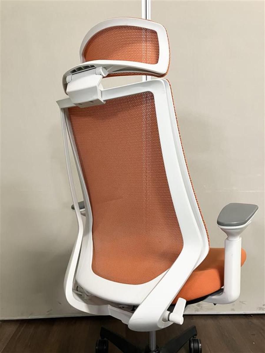 【定価約11万円】【様々な体系や姿勢にも柔軟にフィット!座り心地抜群の肘付きハイバックチェア!】■コクヨ(KOKUYO)製 デュオラ(Duora)チェア 肘付ハイバック 背面メッシュ ■可動肘 ■タンジェリン(オレンジ)×ホワイトシェル×ブラック脚