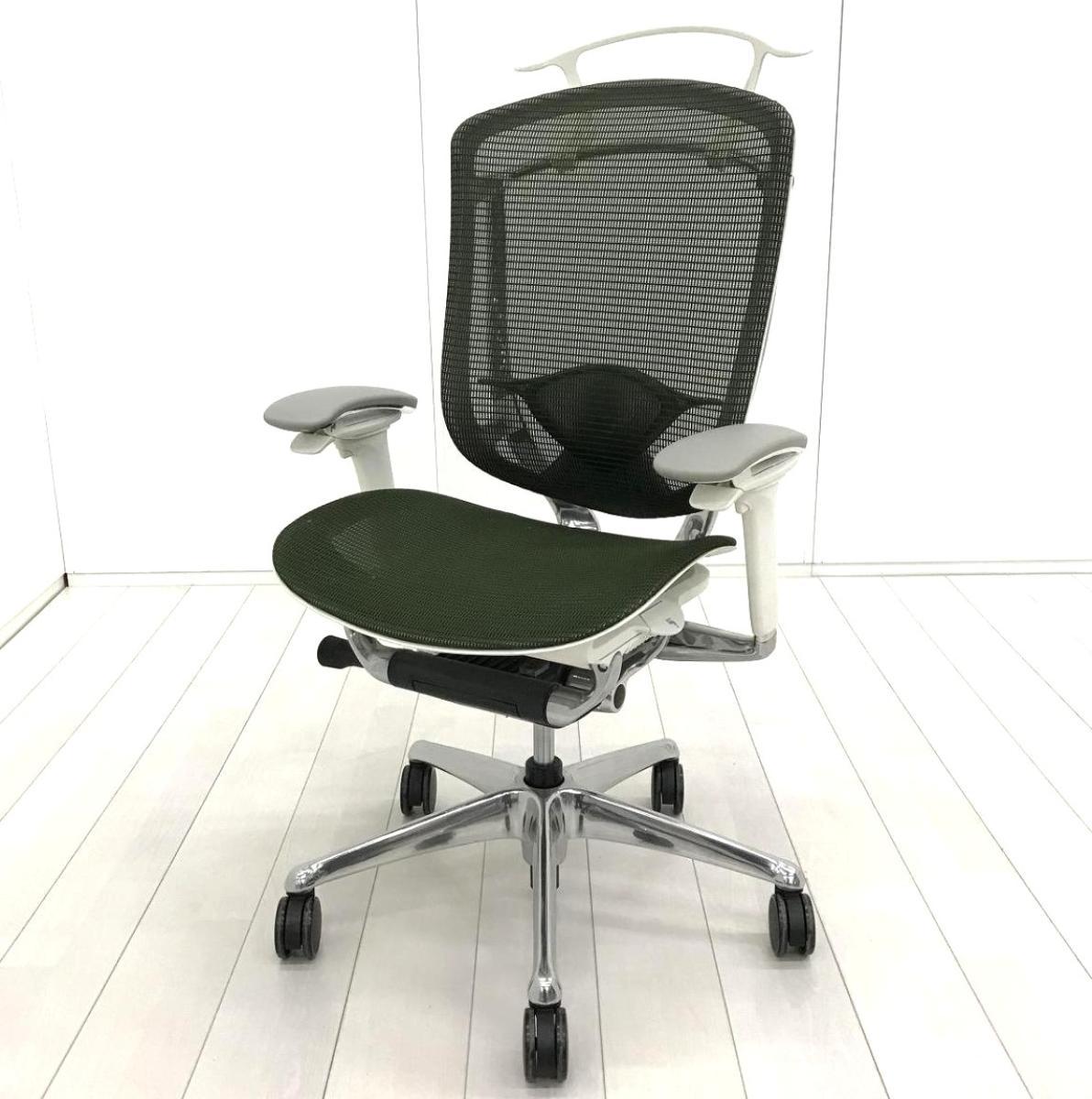 【最上位機種にふさわしい上質な座り心地!】■オカムラ コンテッサセコンダチェア アジャストアーム ダークグリーン ホワイトシェル ランバー付 ハンガー付 ポリッシュフレーム ■世界クラスの強度と進化した座り心地! CC82BZ-FPH5【Okamura Contessa seconda】【ABW】- 川崎店