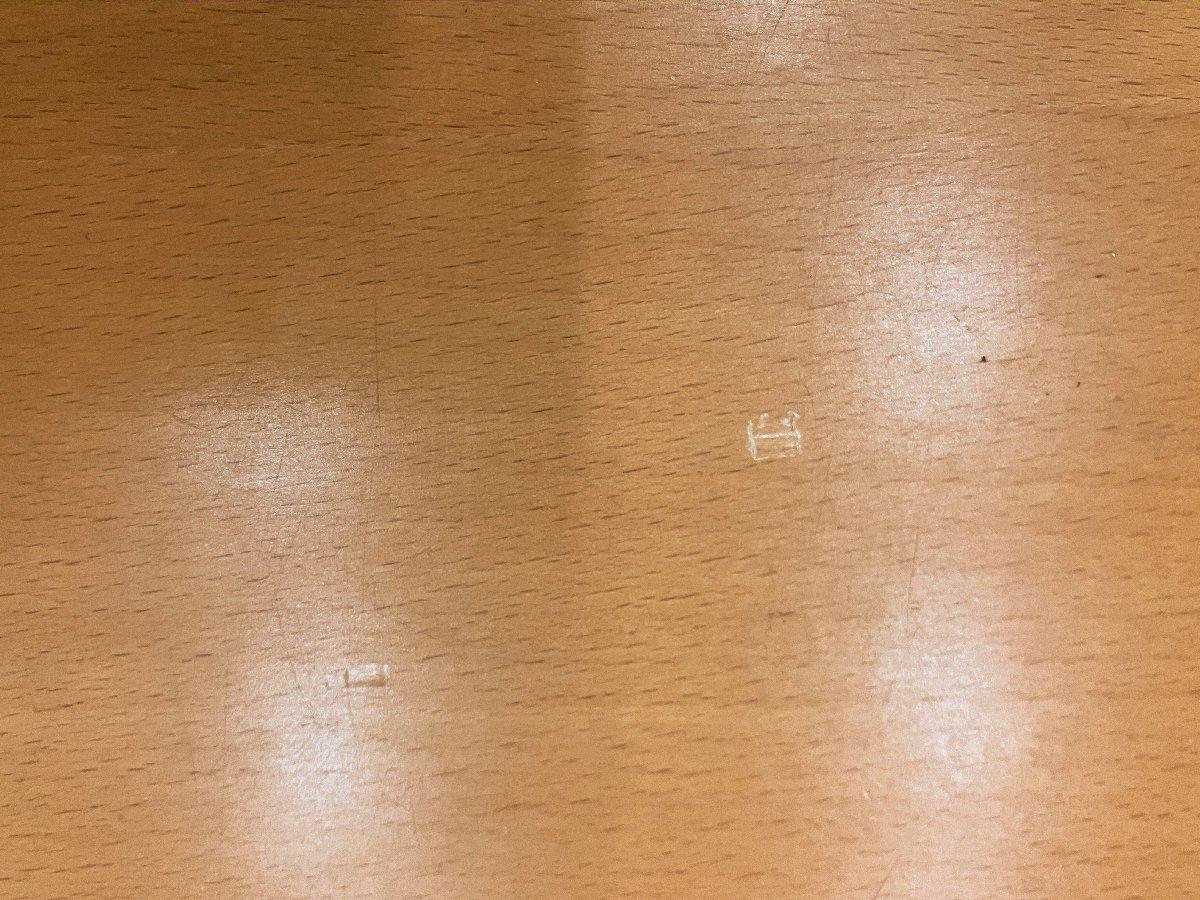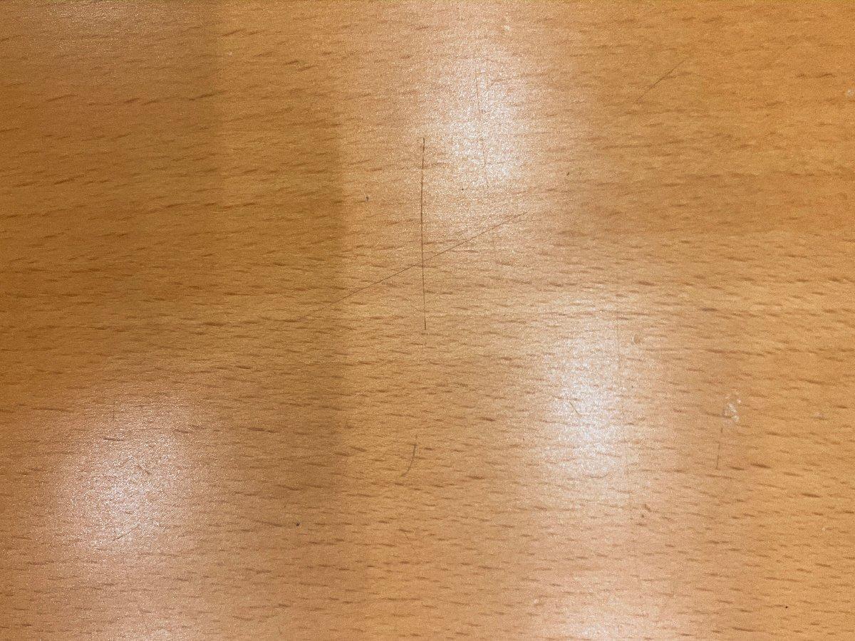 - 目立つ箇所あり傷・凹みが多数、深い傷・凹みが一部ある。(例、天板、幕板、棚板、サイド部分、脚部等にある。)