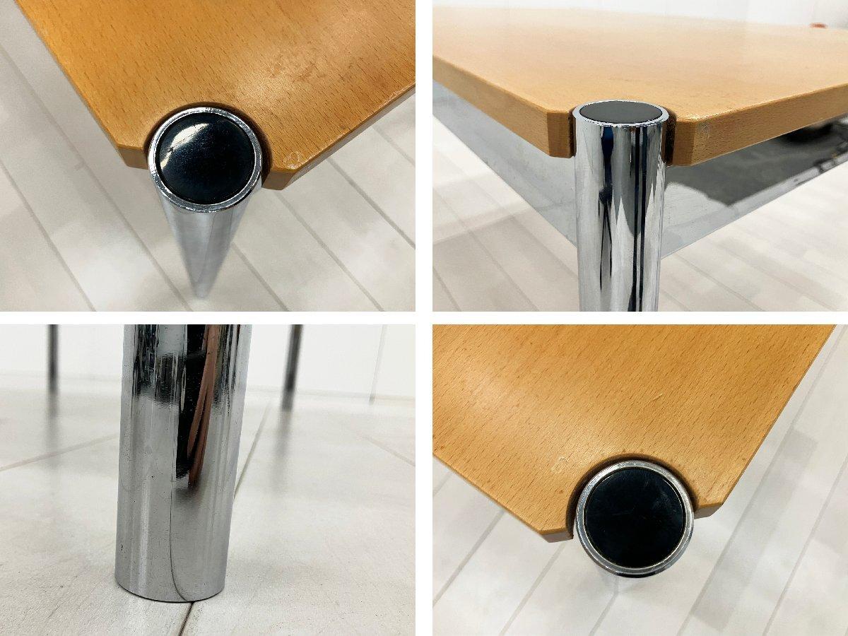 ラッカービーチ天板とクローム脚の組み合わせが、軽やかで洗練された印象を演出します。