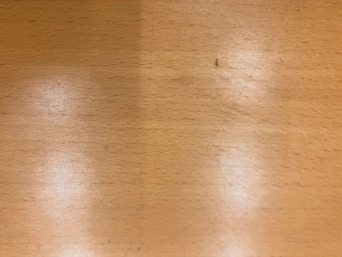 - あり黄ばみ・変色が広い範囲にうっすらある、または濃い黄ばみ・変色が一部ある。(例、天板、幕板、棚板、サイド部分、脚部等にある。)