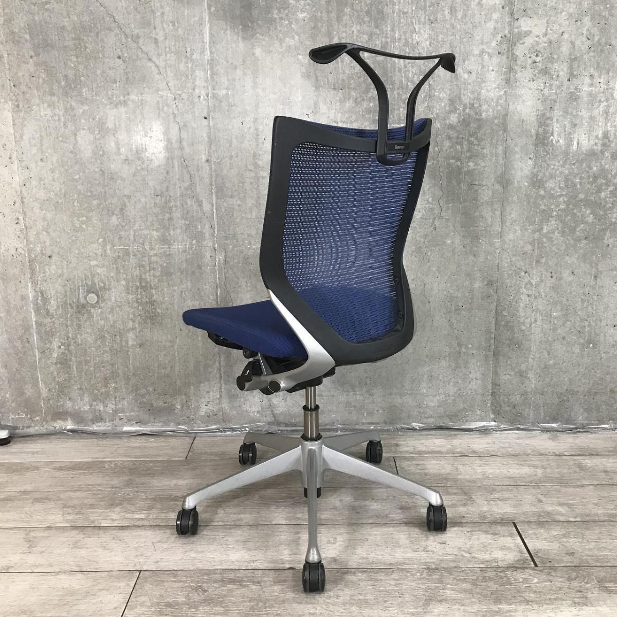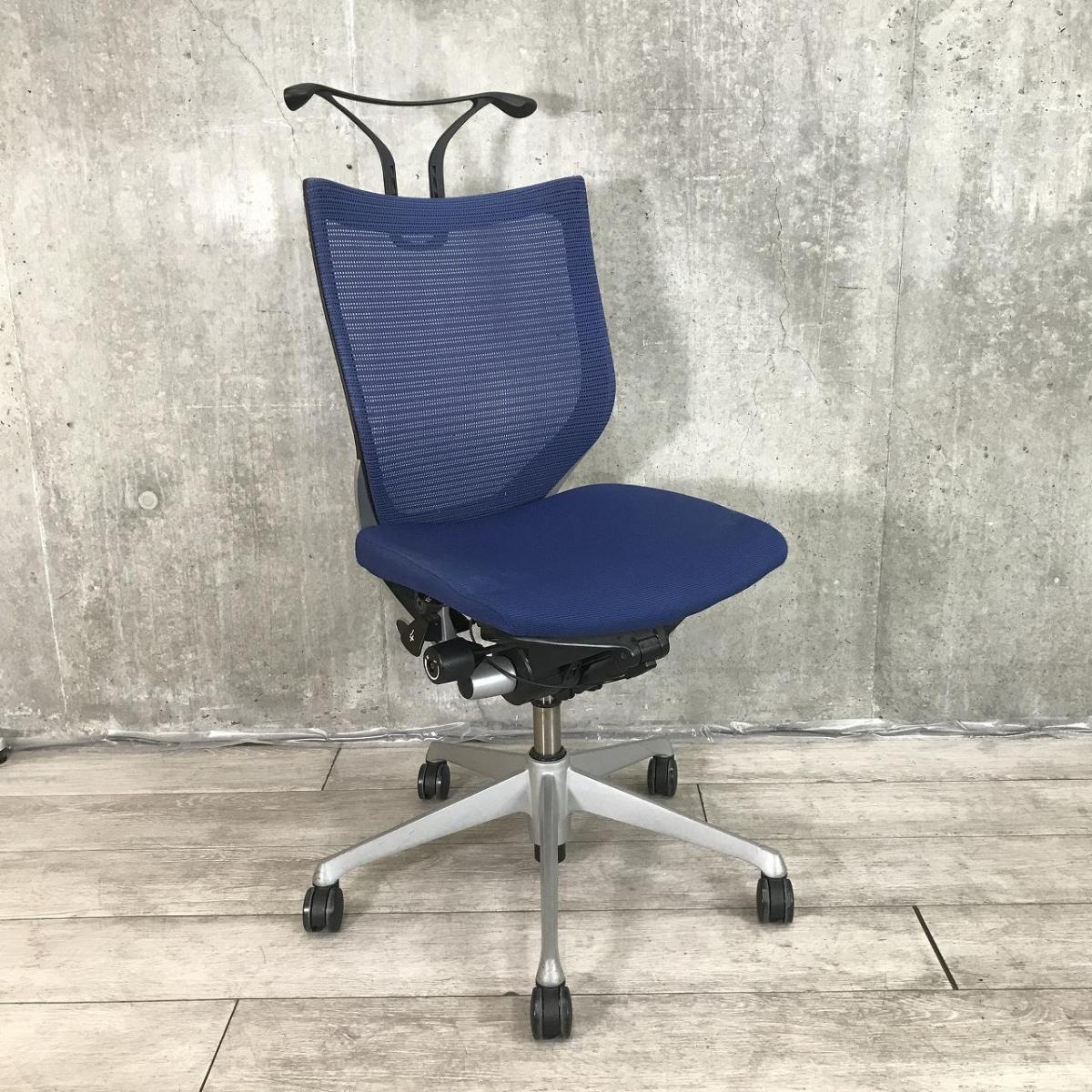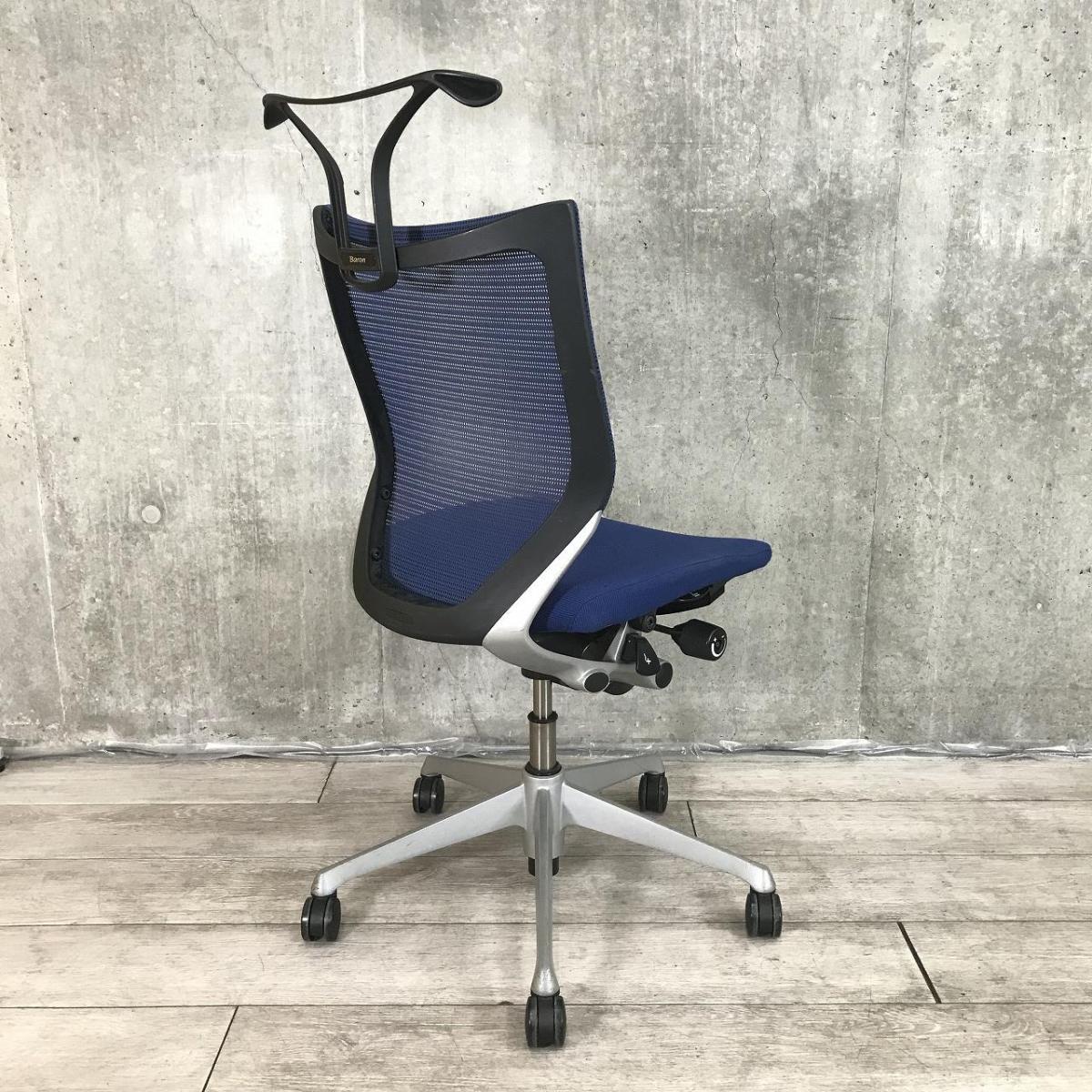 【ワーカーの姿勢をサポート!人間工学に基づいた快適設計!】■オカムラ バロンチェア ブルー アームレス ハンガー付【Okamura Baron】【在庫入替セール品!(本在庫限定価格)】- 川崎店