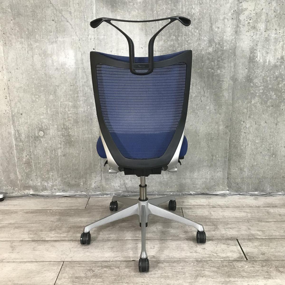 ★【T4】【商品入替のため、残り1脚限り】オカムラ製 バロン ミディアムブルー 肘無し ローバック グラデーションサポートメッシュ ポリッシュ脚 肘無しローバックチェア!!
