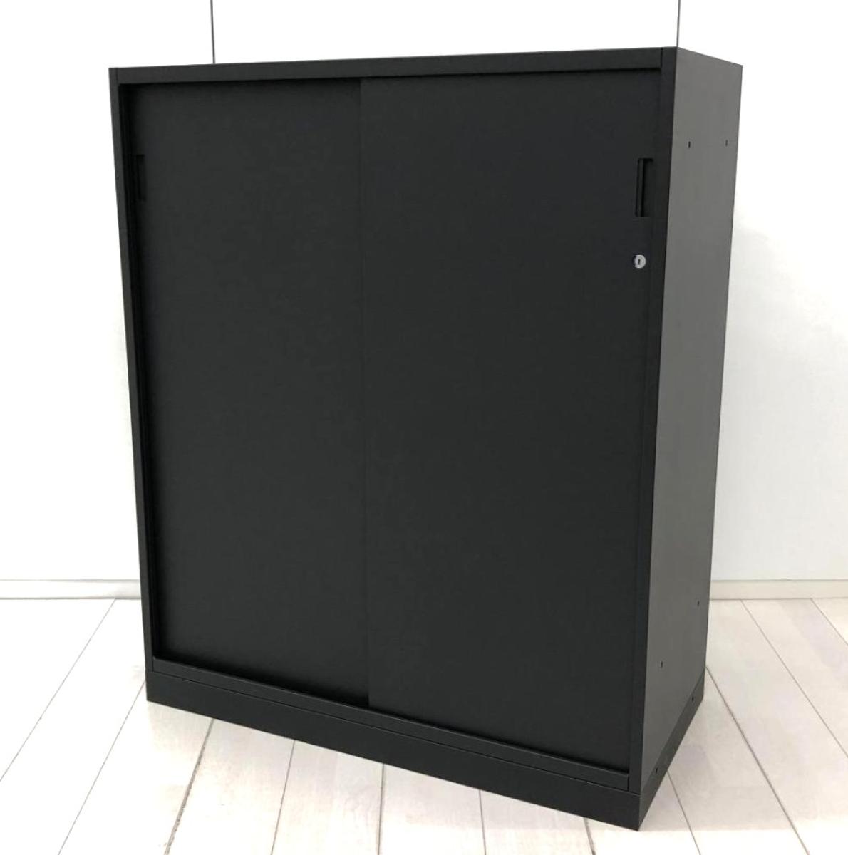 【フラットで美しいデザインが好評です!】■イトーキ エスキャビネットシリーズ 引戸書庫 サテンブラック シリンダー錠 ■スライド扉でスペースを有効活用! 2枚引き違い扉【ITOKI eS】【ABW- 川崎店