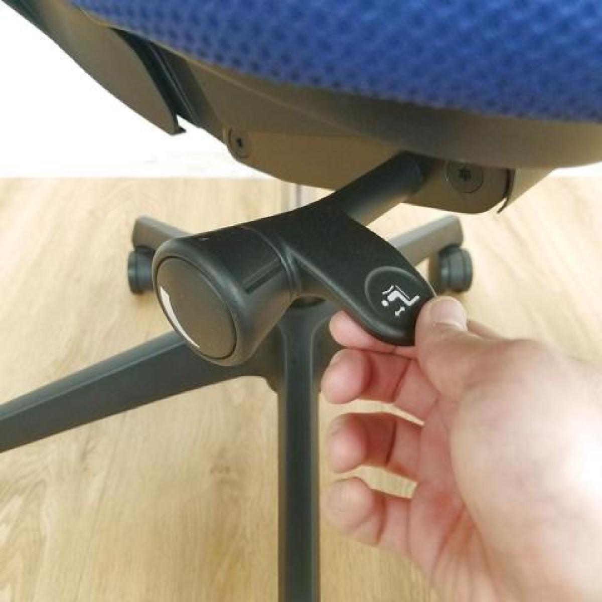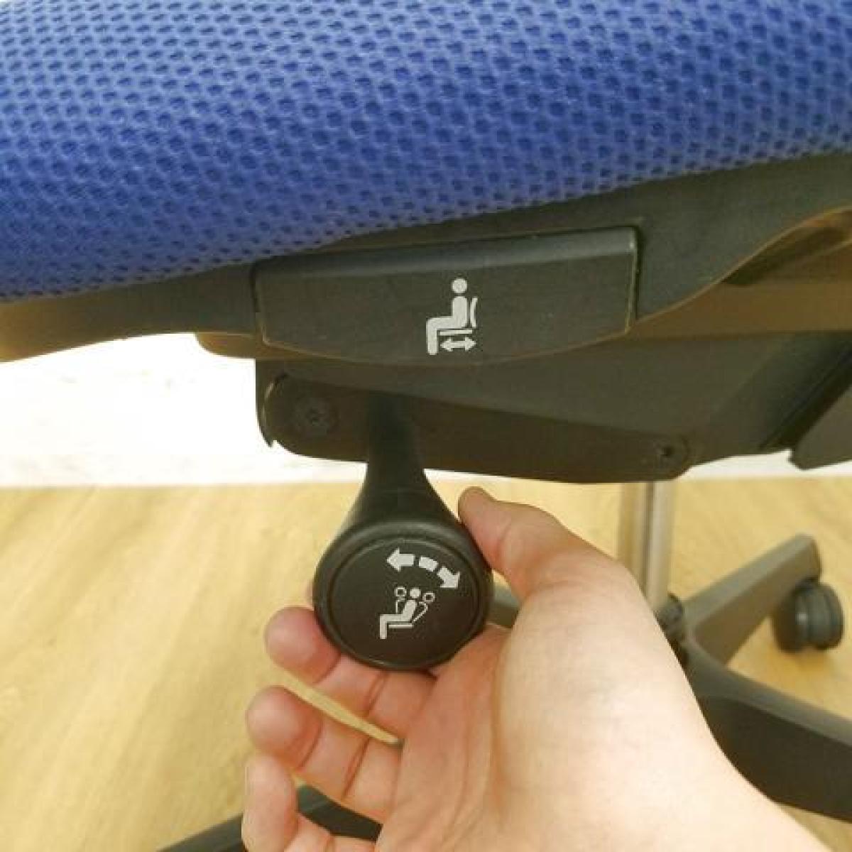 - 座面右下のダイヤル操作で、リクライニングの強弱調整が行えます。これまでのダイヤル式よりも、少ない回転数で、最弱?最強の調整が可能です。