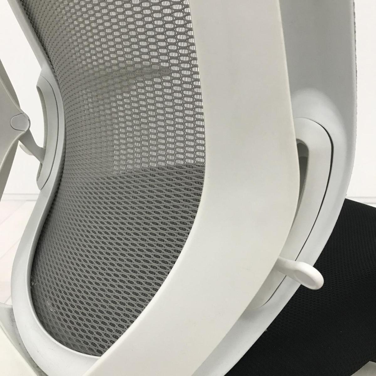 【背のカーブを変えられる!新感覚のオフィスシーティング!】■オカムラ シルフィーチェア 可動肘付 背グレー/座ブラック ホワイトシェル エクストラハイバック仕様 ■包み込まれるような快適な座り心地!【Okamrua Sylphy】